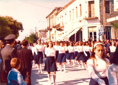 «Ο κόσμος τότε ήταν αλλιώς. Η πλατεία ήταν το κέντρο του Αλμυρού και βέβαια της αριστοκρατίας. Οι γυναίκες έπρεπε να είναι περιποιημένες και χτενισμένες στο κομμωτήριο, ακόμα και για να περάσουν έξω από του Τακόπουλου. Οι μεγαλοκυρίες που βρέθηκαν στον Αλμυρό, ακολουθώντας τους συζύγους τους σε μεταθέσεις στην επαρχία, ήθελαν με κάθε τρόπο να ξεχωρίζουν από τους «Καραγκιορίσιους», όπως αποκαλούσαν τους Αλμυριώτες.»