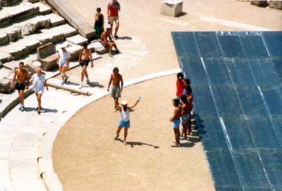 1987. Αρχαίο θέατρο Επιδαύρου και …αυτοσχέδια θεατρική παράσταση από τα μέλη του Συλλόγου
