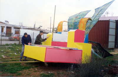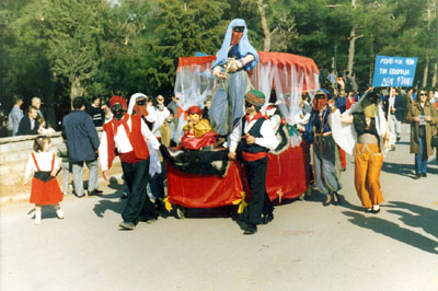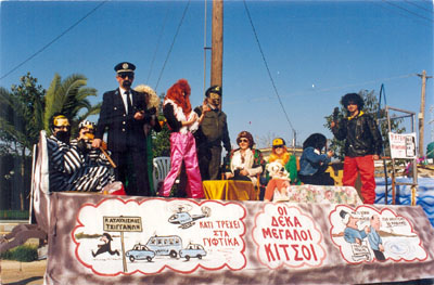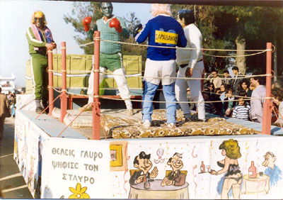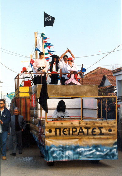Με την εκλογή του Δημήτρη Εσερίδη, η Κοινότητα διοργανώνει για δυο χρονιές το καρναβάλι, και στη συνέχεια επανέρχεται στην ευθύνη του Πολιτιστικού Συλλόγου. Τα άρματα για μια χρονιά κατασκευάζονται στο συνεργείο του Δημήτρη Τώρρη. Και αμέσως μετά τις κατασκευές, για αρκετά χρόνια, αναλαμβάνει ο Λευτέρης Μιχαλούδης με τον πατέρα του Γιώργο και κάνουν θαύματα. Μεγάλες και εντυπωσιακές κατασκευές, όπως αεροπλάνο, ελέφαντες, καράβια… Στην ομάδα εργασίας προστίθενται η ζωγράφος Ελένη Παπανικολοπούλου, ο Θανάσης Κακλιάς, ο Γιώργος Μάγγας, ο Μιχάλης Μπογδανίδης, ο Γιώργος Παυλίδης και πολλοί άλλοι, που έρχονται την τελευταία στιγμή.
