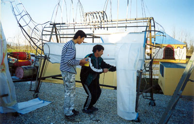 Κάθε βράδυ, στην αίθουσα του Συλλόγου, μελίσσι από κόσμο… ο καθένας με τον τρόπο του βοηθά. Οι νηπιαγωγοί Ελευθερία Μπουκουβάλα, η Κούλα Κυριτσά – Καραγκούνη, η Ευαγγελία Μέτσου, η Γιάννα Αρίδη – Καραγκούνη, η Ελένη Τσέκα, να δίνουν κατευθύνσεις για τις κατασκευές. Η Εύη Καραγιάννη, η Ρίτσα Κατραμάδη για τα ρούχα. Μικροί μεγάλοι να βοηθούν. Γέλια, δουλειές και χαρά. Στο συνεργείο του Γιώργου Σαρρή μετά το τέλος της δουλειάς και πάντοτε μετά τις έντεκα το βράδυ, άναβαν τα κάρβουνα και έμπαινε πάνω ότι βρίσκονταν: πατάτες, κρεμμύδια, ρέγκες, κρέας. Κρασί ντόπιο, ευξεινουπολίτικο. Άρχιζε η ανασκόπηση της ημέρας και πέφταν βροχή οι ιδέες της τελευταίας στιγμής. Και μετά από λίγα ποτηράκια ντόπιου κρασιού, άρχιζαν τα τραγούδια και το γλέντι.