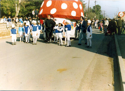 Η επόμενη χρονιά εμπλουτίστηκε και με μια πλατφόρμα, ένα γάιδαρο και αρκετούς μεμονωμένους πεζούς. Τα άρματα αυτά εικαστικά τα επιμελούνταν η μαθήτρια Λίτσα Καραγκούνη, που είχε ταλέντο και η οποία αργότερα έγινε ζωγράφος.