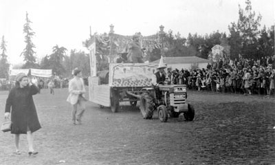 Σ’ αυτή την περίοδο, ο Σύλλογος Αγροτικής «Αγροτόπαιδα», ξεκίνησε την προσπάθεια οργανωμένου καρναβαλιού. Επιστράτευσαν ένα κάρο. Ντύθηκαν νύφη η Βούλα Μπελεγρίνη και γαμπρός ο Κώστας Καραμπάσης. Παρανυφάκι η μικρή τότε Εύη Καραγιάννη. Και στο γήπεδο όπου έγινε η παρέλαση, σταφύλια ο κόσμος!