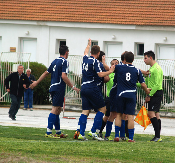 Οι παίκτες του Κώστα Κούτσικα έπαιξαν αρκετά καλά –τηρουμένων των συνθηκών που επικράτησαν τις προηγούμενες ημέρες από την απώλεια του Κυπέλλου- ανταποκρινόμενοι στις απαιτήσεις του παιχνιδιού, αφού είχαν να αντιμετωπίσουν και τις απουσίες τριών βασικών στελεχών. Οι Βαγγέλης Ελευθερίου και Στέλιος Τσιάτσιος για επαγγελματικούς λόγους και ο Βασίλης Τσιάτσιος, ο οποίος δεν κατάφερε να ξεπεράσει τον τραυματισμό που αποκόμισε από τον τελικό Κυπέλλου, δεν μπόρεσαν να δώσουν το παρών. Και σαν μην έφθαναν οι παραπάνω ελλείψεις, ο Βαγγέλης Νικηφοράκης αντικαταστάθηκε λίγα λεπτά πριν τη συμπλήρωση του πρώτου ημιώρου, αφού ένιωσε τράβηγμα στο πίσω μέρος του ποδιού του, σε προσπάθεια να απομακρύνει από την περιοχή, γέμισμα αντιπάλου. Τη θέση του πήρε ο Παναγιώτης Βούλγαρης, παίζοντας για πρώτη φορά στόπερ μαζί με τον Πλαβό και μάλιστα τα πήγε αρκετά καλά. Στον πάγκο βρίσκονταν επίσης και οι Κλουκουτάρας, Αγραφιώτης, Μπίνας και Φάτσης.