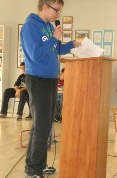 Ακολούθησε το μήνυμα προς τους μαθητές του Υφυπουργού Παιδείας κ. Παπαθεοδώρου για την Εξάλειψη των Φυλετικών διακρίσεων και της Ξενοφοβίας και η αναφορά στον Μάρτιν Λούθερ Κίνγκ (από τον μαθητή Χρήστο Καρούτη). Ο μαθητής Γιώργος Μυλωνάς στη συνέχεια παρουσίασε ένα απόσπασμα από τον Οδηγό Αντιρατσιστικής Εκπαίδευσης, του Γ. Τσιάκαλου και -τέλος- η μαθήτρια Ασημίνα Χρυσικού διάβασε ένα επίκαιρο άρθρο για τον ρατσισμό και τις φυλετικές διακρίσεις του συγγραφέα Νίκου Δήμου.