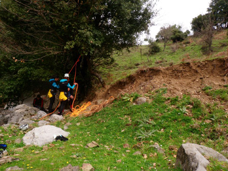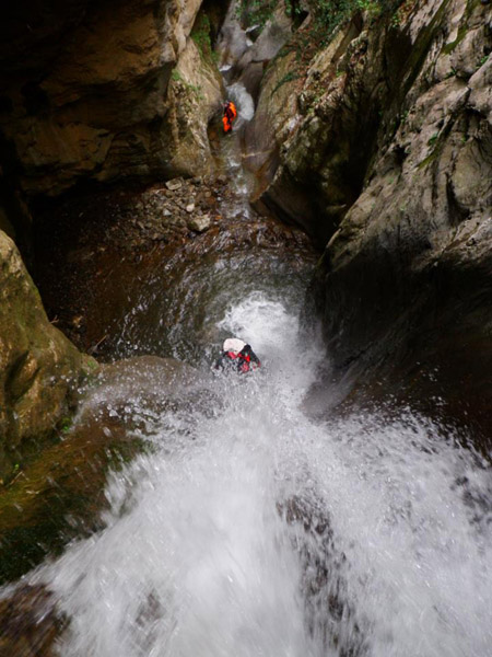 Η διαδρομή άρχισε με μία 45λεπτη ανηφορική πεζοπορία για να φθάσουμε στο σημείο εκκίνησης, ενώ λίγο πριν ξεκινήσουν την εμπειρία του canyoning, έγινε θεωρητικό μάθημα, τουλάχιστον για όσους δοκίμαζαν για πρώτη φορά.