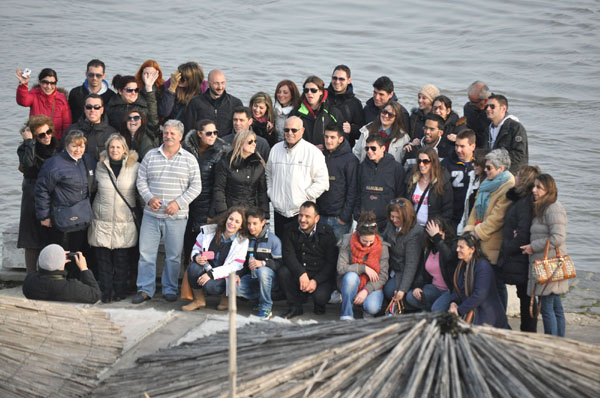 Πενήντα πέντε άτομα αποτελούσαν τη χορευτική αποστολή του Λ.Ε.Β. συνοδευόμενη κατά το ήμισυ από το περιφερειακό τμήμα χορού Αλμυρού (συνδετικός κρίκος ήταν η κ. Γκαμπριέλα Οικονόμου από το Γαλάτσι που ζει χρόνια στον Αλμυρό). Το μακρύ ταξίδι μέσω της Βουλγαρίας μας έβγαλε το απόγευμα της Παρασκευής 29 Μαρτίου στο χιονισμένο Γαλάτσι, μας υποδέχτηκαν όμως «θερμά» τα μέλη του πολιτιστικού συλλόγου «Όλυμπος», η πρόεδρος κα. Ροδόκλια Ζαμφειροπούλου και η υπεύθυνη των εκπαιδευτικών προγραμμάτων κα. Έλλη Βουρλή.