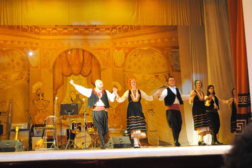Η παράσταση αφιερωμένη στην επέτειο της 25ης Μαρτίου έγινε το Σάββατο το πρωί στις 30 Μαρτίου στο κατάμεστο θέατρο της πόλης με θεατές Έλληνες και Ρουμάνους. Η χορευτική ομάδα του Λ.Ε. Βόλου και Αλμυρού παρουσίασε χορούς της Θεσσαλίας, των νησιών του Αιγαίου, της Μακεδονίας και της Βόρειας Θράκης και ξεχώρισαν για τις αυθεντικές φορεσιές τους, ενώ η χορευτική ομάδα «Όλυμπος» χόρεψε χορούς από την Κρήτη, Ήπειρο, Πόντο και Θράκη. Ελληνικοί χοροί, τραγούδια και ποιήματα κράτησαν το κοινό για 3 ολόκληρες ώρες. Σε εμάς τους συνοδούς της χορευτικής ομάδας του Λ.Ε.Β. που παρακολουθήσαμε την παράσταση η έκπληξη εναλλασσόταν με τη συγκίνηση. Τόσα νέα παιδιά, ελληνόπουλα της διασποράς, άψογοι χορευτές στον τσάμικο και τον καλαματιανό και ηλικιωμένοι χορωδοί με τις κιθάρες τους να ξεσηκώνουν το κοινό. Στοιχεία ελληνικού πολιτισμού σκόρπια, ασύνδετα, αλλά γεμάτα πάθος, νοσταλγία και αισιοδοξία. «Είμαστε εδώ, Έλληνες από πάντα!», μου είπε μια κυρία την οποία συναντήσαμε και το άλλο πρωί στην ελληνική εκκλησία της Μεταμόρφωσης του Σωτήρος. Το μεσημέρι ξεναγηθήκαμε στην πόλη, θαυμάσαμε το μεγαλείο του Δούναβη και περπατήσαμε στο κέντρο.