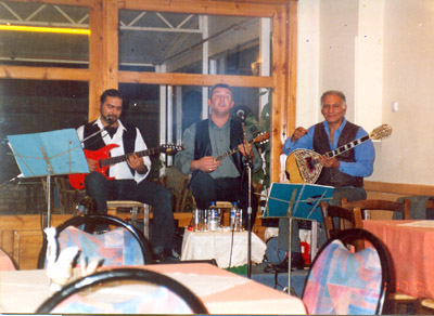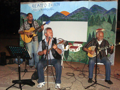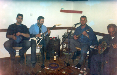 Στο “Στέκι των κυνηγών” στον Παλιό Πλάτανο, με τον Θανάση Μπένο, τον Άγγελο Αλεξίου, και έναν ακόμα από τους μουσικούς της νεότερης γενιάς, τον Θοδωρή Καζαντζή