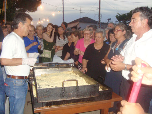 Μεγάλες ποσότητες πρόβειου κρέατος που συνοδευόταν από πλιγούρι, ευλογήθηκαν από τους ιερείς και διανεμήθηκαν δωρεάν στους επισκέπτες, ως συνέχεια μιας πατροπαράδοτης τελετουργίας, που χάνεται στα βάθη των αιώνων, σε μια προσπάθεια του Συλλόγου να αναβιώσει ένα ακόμη από τα πολυάριθμα έθιμα των προγόνων μας, τα οποία -ανά τους καιρούς- συνέβαλαν στη διατήρηση της παράδοσης και της συνοχής ενός πολύπαθου λαού.