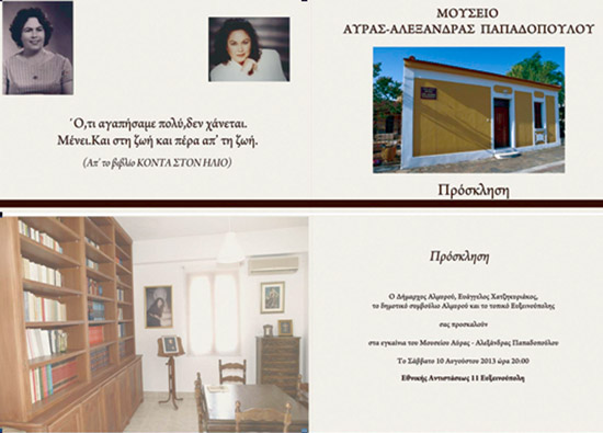 Στις 10 Αυγούστου 2013, ημέρα Σάββατο και ώρα 20:00 μ.μ., εγκαινιάζεται στην Ευξεινούπολη, από τον Δήμο Αλμυρού, το ΜΟΥΣΕΙΟ «ΑΥΡΑΣ ΑΛΕΞΑΝΔΡΑΣ ΠΑΠΑΔΟΠΟΥΛΟΥ».