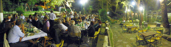 Το βράδυ, συνεχίστηκε με γλέντι από τους ιδιαίτερα ζεστούς και φιλόξενους οικοδεσπότες των δύο Χορωδιών στο κέντρο «Όαση», που ήταν πραγματικά ό,τι περιέγραφε το όνομα του χώρου, καθώς επρόκειτο για μια δασώδη περιοχή γεμάτη πράσινο και φυσική ομορφιά.