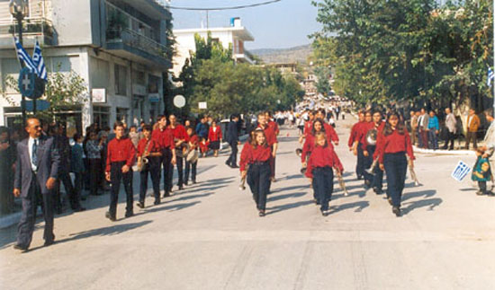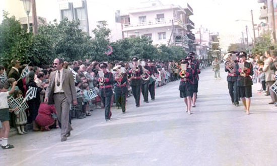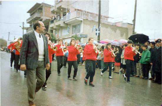 Ανήμερα των Εθνικών Εορτών ξυπνούσαμε αξημέρωτα και βγαίναμε πρωί – πρωί με την μπάντα, για να γυρίσουμε στους δρόμους της πόλης, παίζοντας το «Εωθινόν». Περνούσαμε και από το σπίτι του Δημάρχου, για να τον ξυπνήσουμε, και στις 10 η ώρα ήμασταν στην πλατεία όπου γινόταν η έπαρση της ελληνικής σημαίας, παρουσία και τιμητικού αγήματος από την 111 Πτέρυγα Μάχης. Στη συνέχεια πηγαίναμε στο προαύλιο του Αγίου Δημητρίου, όπου παίζαμε το «Δημαρχιακό», περιμένοντας τους επισήμους να εισέλθουν στο ναό. Μετά τη Θεία Λειτουργία λαμβάναμε θέσεις κοντά στο Ηρώο για την κατάθεση των στεφάνων, παίζοντας την Προσευχή για τους πεσόντες, την οποία ακολουθούσε ενός λεπτού σιγή και η ανάκρουση του Εθνικού Ύμνου.