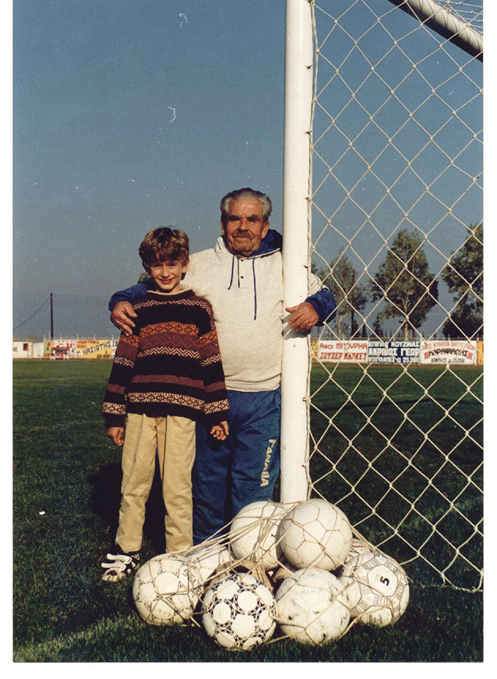 Ο Θανάσης Καραντούρος με το γιό του Γιώργο στο Στάδιο Αλμυρού