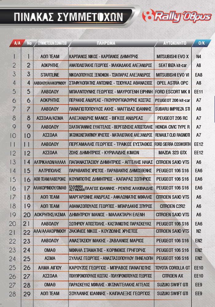 Ράλι Όθρυς: Συμμετοχές και πρόγραμμα