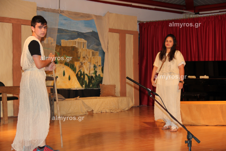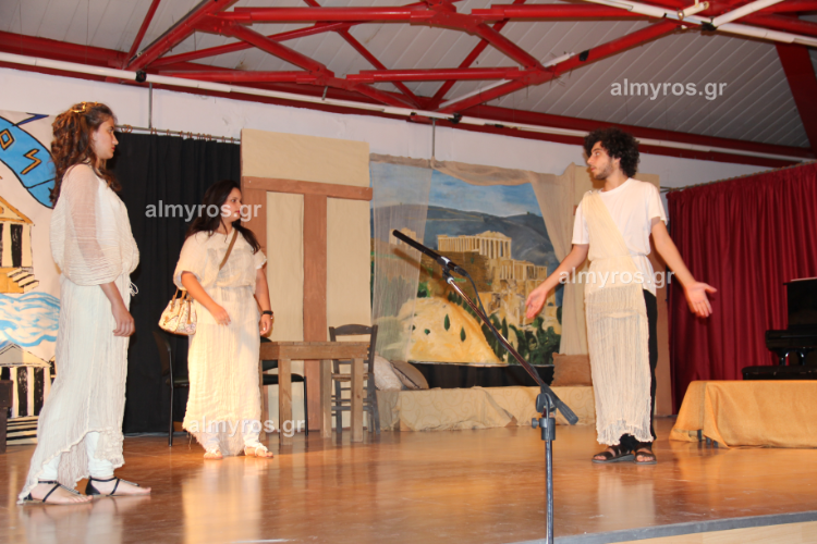 Η θεατρική ομάδα του 2ου Γυμνασίου Αλμυρού παρουσίασε την θεατρική παράσταση «Μια Λυσιστράτη κι ένας Σκαρμούτσος θα σώσουν τον κόσμο».