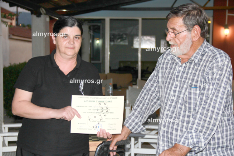 Πρώτος νικητής αναδείχθηκε ο Γιάννης Οικονόμους ο οποίος βραβεύτηκε με ένα τάβλι και ο δεύτερος με ένα αναμνηστικό. Όλοι οι συμμετέχοντες παρέλαβαν διπλώματα συμμετοχής.