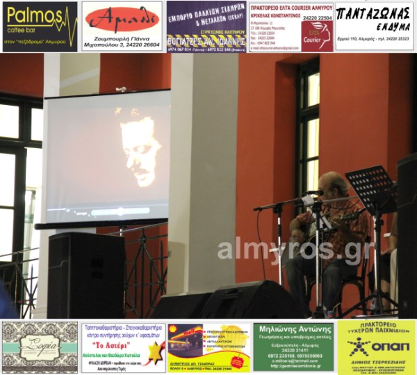 Την μουσική παράσταση συνόδευσε οπτικοακουστικό υλικό με στιγμές από τη ζωή και την πορεία του μεγάλου λαϊκού συνθέτη και στιχουργού!