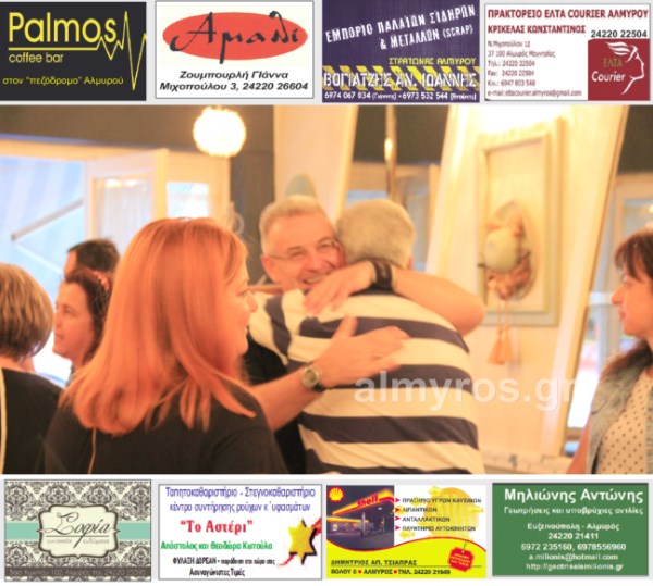 Με μεγάλη επιτυχία κατά την ομολογία όλων των παρευρισκόμενων έγινε το Σάββατο 22-8-2015 η συνάντηση των απόφοιτων της τάξης του 1985 του Γενικού Λυκείου Αλμυρού “30 ΧΡΟΝΙΑ ΠΡΙΝ – 30 ΧΡΟΝΙΑ ΜΕΤΑ”. Μέσα σε 10 ώρες που πραγματικά δεν έφθαναν ξεδιπλώθηκαν αναμνήσεις σε ένα πραγματικά συγκινησιακά φωτιζόμενο κλίμα. Η διασκέδαση στο απόγειο μέχρι τις πρώτες πρωινές ώρες και αλήθεια θέλω να σας ευχαριστήσω όλους και όλες που συμμετείχατε και που ήταν η ουσία της επιτυχίας της εκδήλωσης. Να είμαστε όλοι πάντα καλά να συναντηθούμε πάλι – όπως συμφωνηθήκαμε – σε 5 χρόνια. Α! και κάτι τελευταίο. Θα το ψάξω για την εκδρομή στην Ζάκυνθο που ζητήσατε!!!