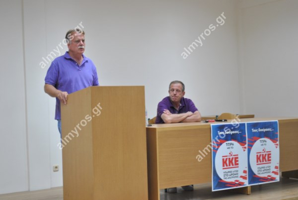 Στην προεκλογική συγκέντρωση που πραγματοποιήθηκε χθες 15/09 στην αίθουσα του Εργατικού Κέντρου Αλμυρού, κυρίως ομιλητής ήταν ο υποψήφιος βουλευτής Νάνος Απόστολος κάλεσε τον λαό του Αλμυρού να γυρίσει την πλάτη του στα κόμματα που τον έφεραν στο σημείο που βρίσκεται σήμερα και να ενισχύσει το ΚΚΕ, το μόνο κόμμα που του είπε την αλήθεια για τον χαρακτήρα της Ε.Ε. ώστε να βγει δυναμωμένο την επομένη των εκλογών για να παλέψει μέσα και έξω από την βουλή για την ευημερία του λαού μας.