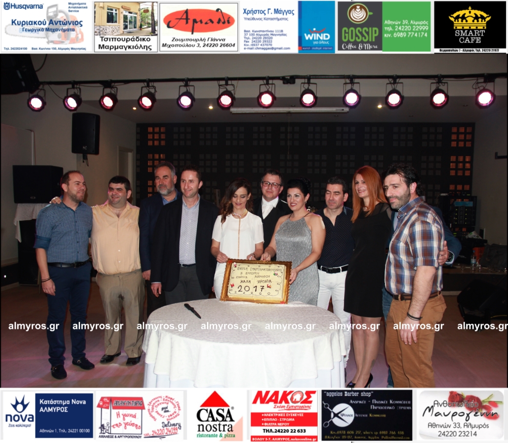 Χθες, Σάββατο 4 Φεβρουαρίου 2017, η Ένωση Επαγγελματοβιοτεχνών και Εμπόρων Αλμυρού έκοψε την Πρωτοχρονιάτικη πίτα της στο Κτήμα Παπαθανασίου – Τιμπλαλέξη. Ακόμη μια φορά, το Δ.Σ. της Ένωσης πρωτοτύπησε, με εκπλήξεις και καινοτομίες και εμφανίστηκε μπροστά στα μέλη του ενωμένο και αποφασισμένο.