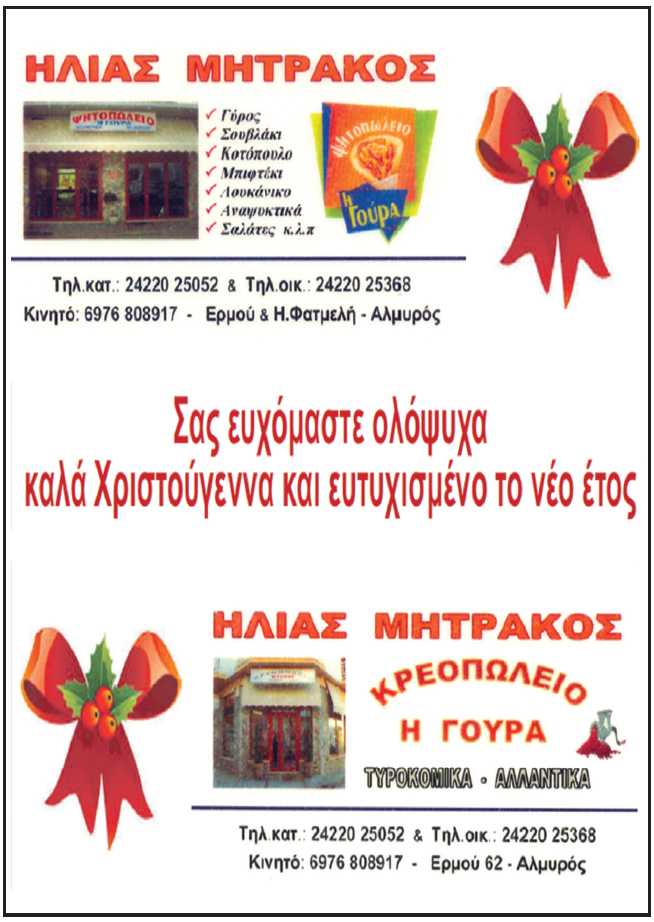 Τοπικά 9 Δεκεμβρίου, 2017 Καλές γιορτές! Καλές αγορές! Καλές γιορτές εύχονται μέσα από το e-almyros.gr επαγγελματίες του Αλμυρού. Παραθέτουμε τις μακέτες και ευχόμαστε με τη σειρά μας μια χαρούμενη εορταστική περίοδο… με αλληλεγγύη και αγάπη! Tags e-almyros.gr kales giortes