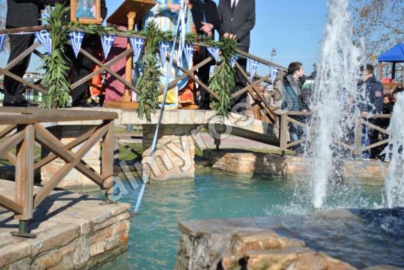 Πλήθος πιστών παρέστη στη Θεία Λειτουργία αλλά και κατά τον Αγιασμό των υδάτων, στο συντριβάνι της πλατείας Ευξεινούπολης όπως συνηθίζεται τα τελευταία χρόνια.