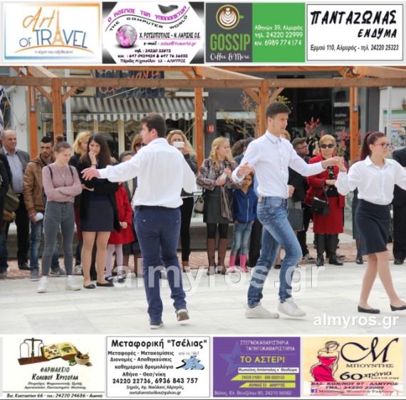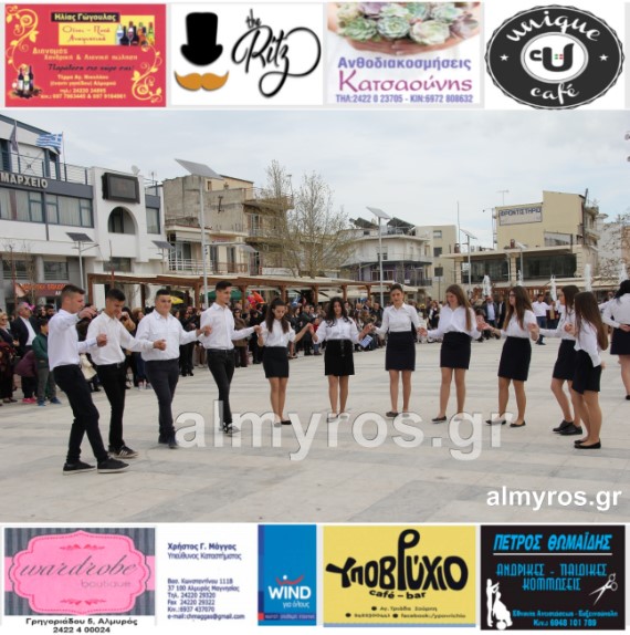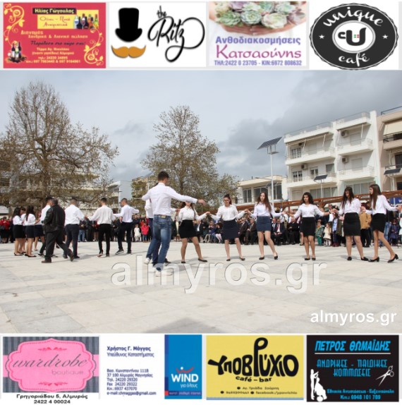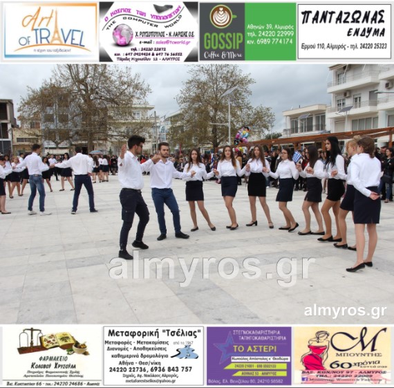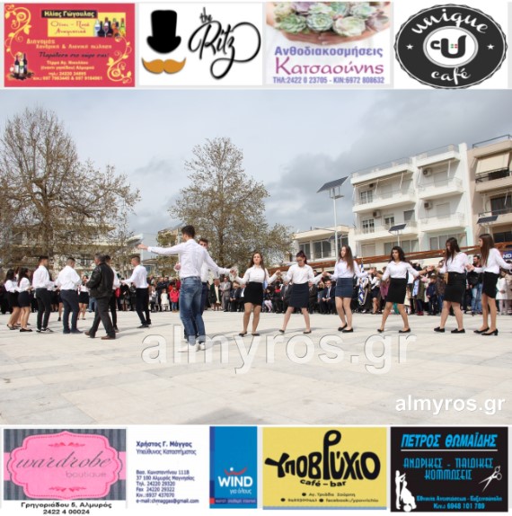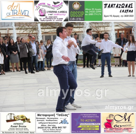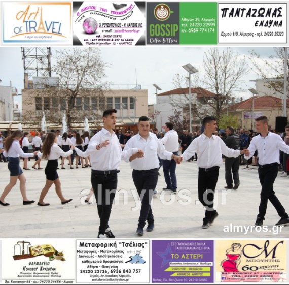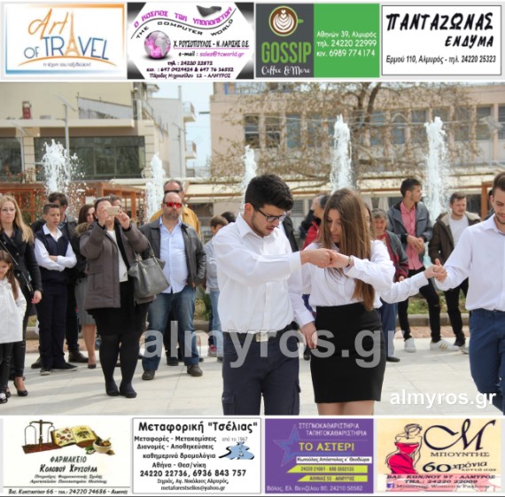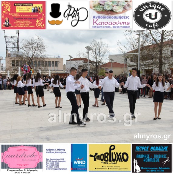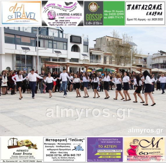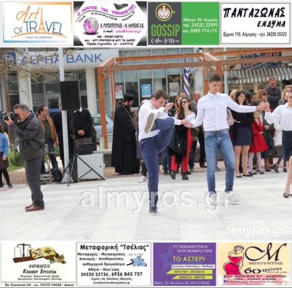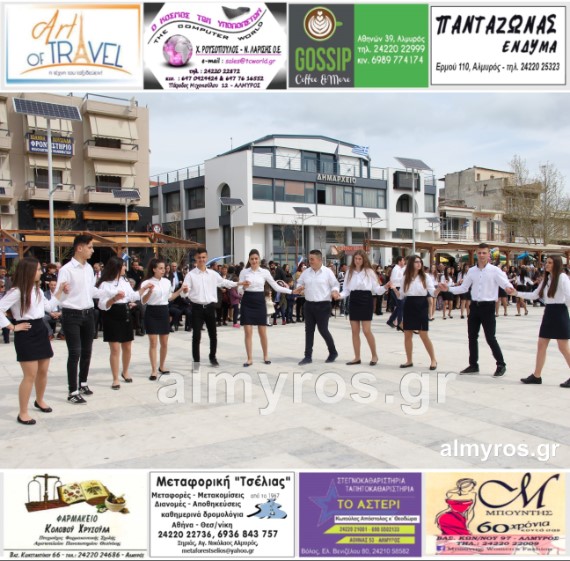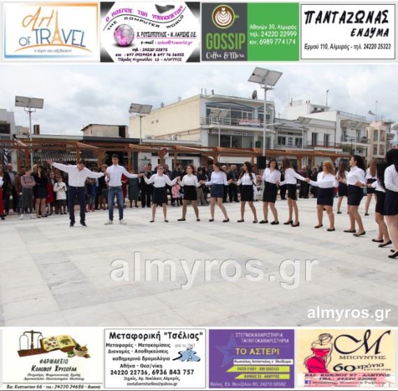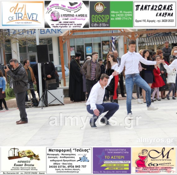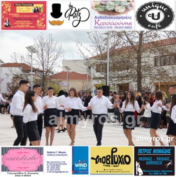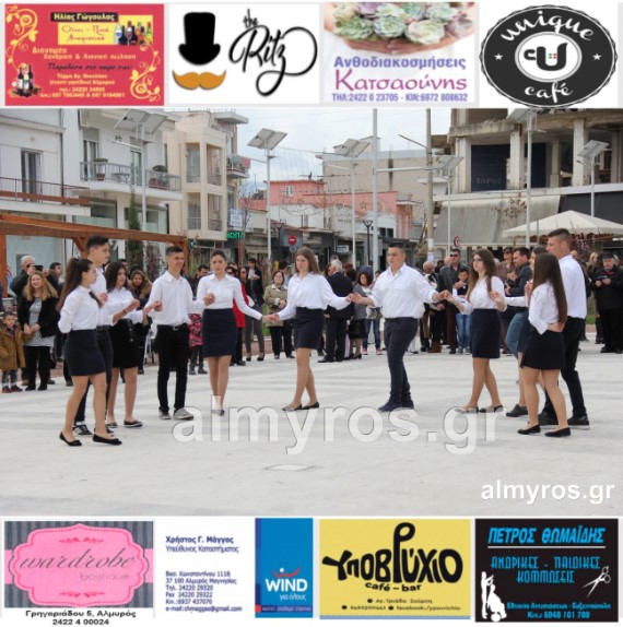 Οι εορταστικές εκδηλώσεις στον Δήμο Αλμυρού, έκλεισαν με χορευτικά δρώμενα από τους μαθητές και τις μαθήτριες του ΕΠΑΛ Αλμυρού, στην Κεντρική Πλατεία, υπό την ευθύνη των Καθηγητών κ.κ. Αθανασίου Φλεβάρη και Παναγιώτη Σακομήτρου.