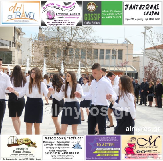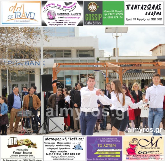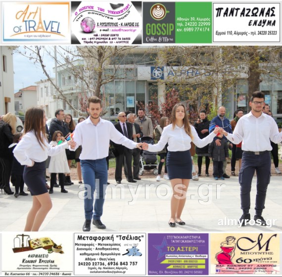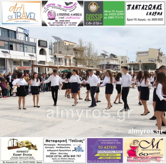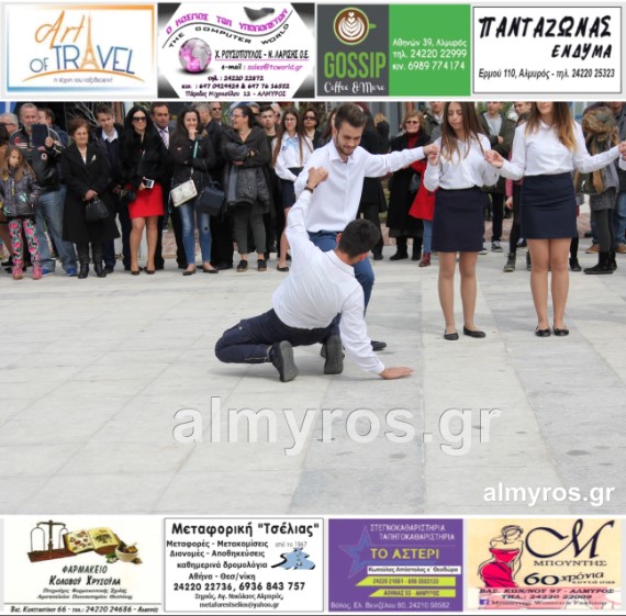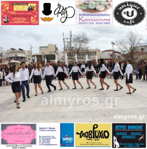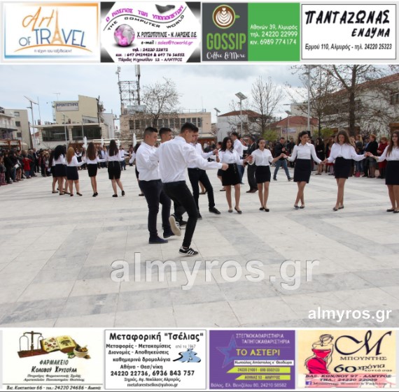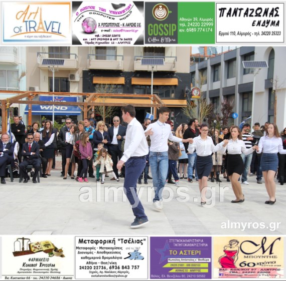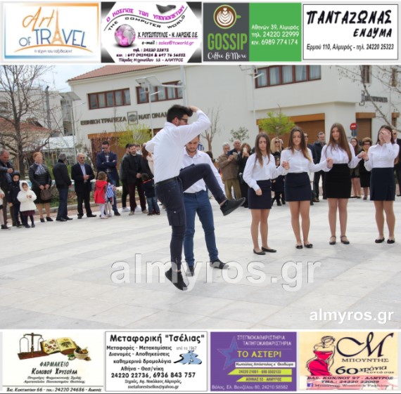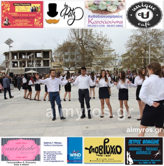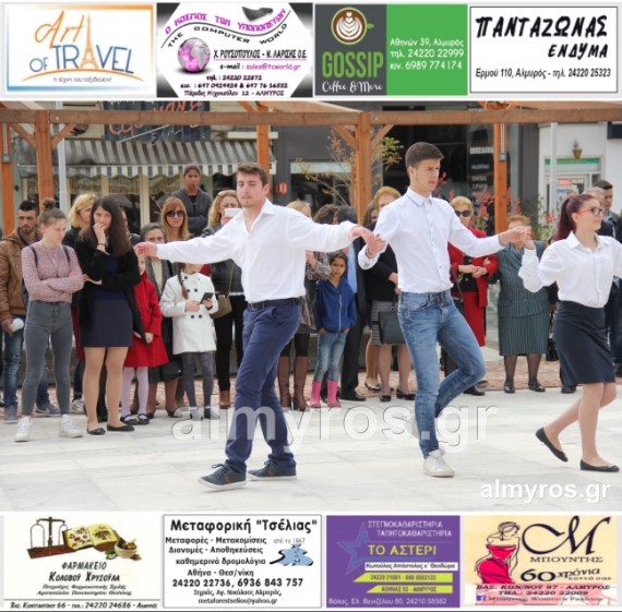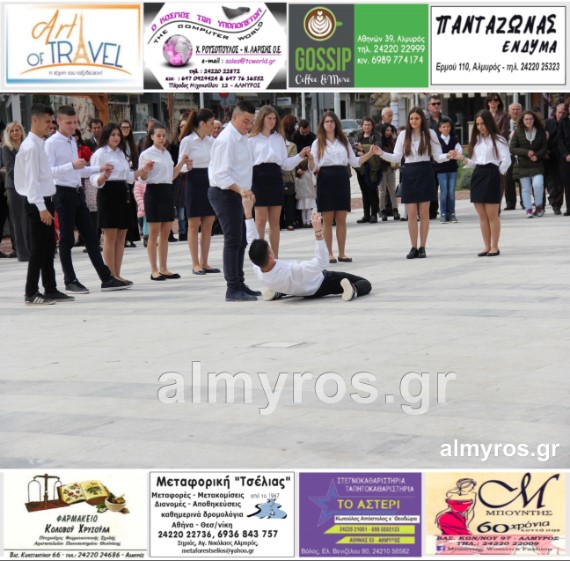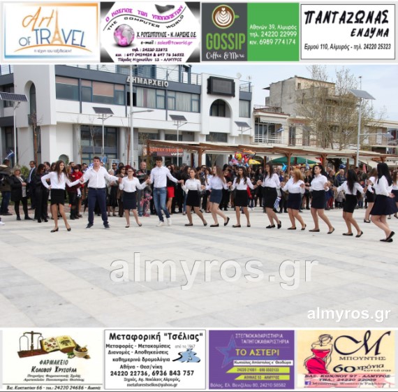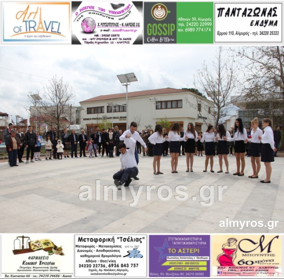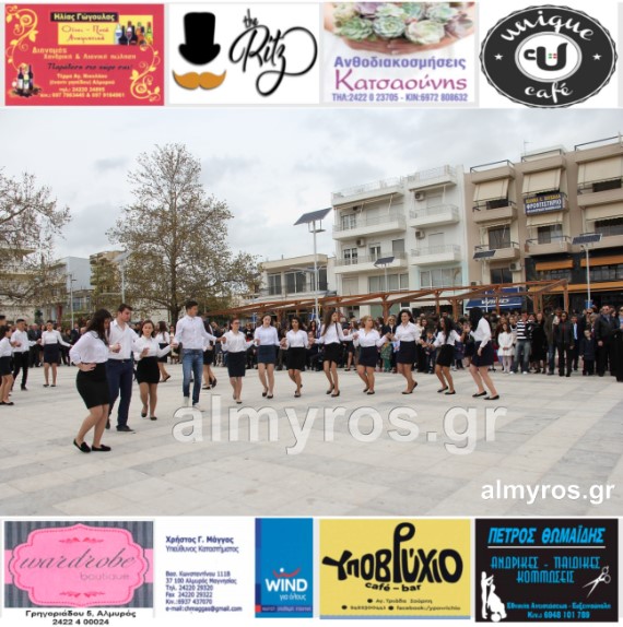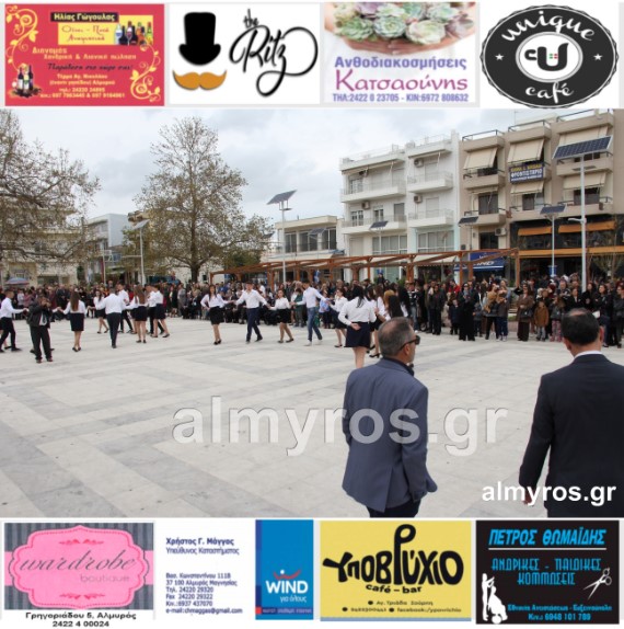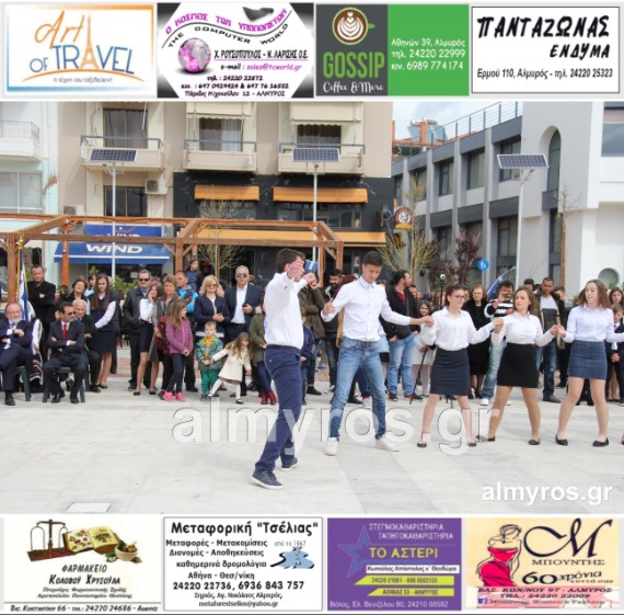 Οι εορταστικές εκδηλώσεις στον Δήμο Αλμυρού, έκλεισαν με χορευτικά δρώμενα από τους μαθητές και τις μαθήτριες του ΕΠΑΛ Αλμυρού, στην Κεντρική Πλατεία, υπό την ευθύνη των Καθηγητών κ.κ. Αθανασίου Φλεβάρη και Παναγιώτη Σακομήτρου.
