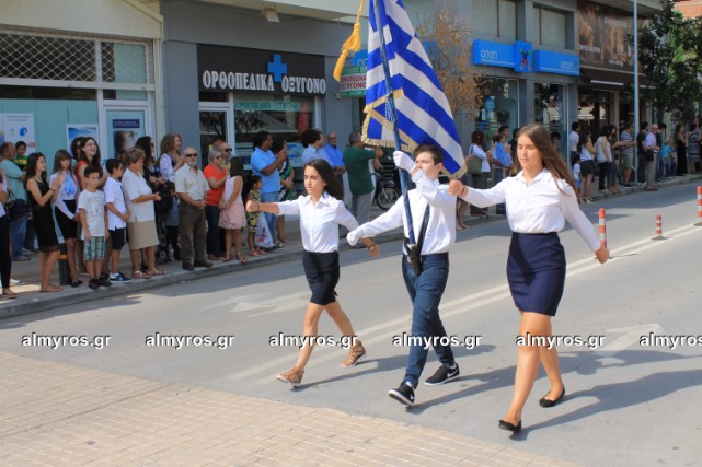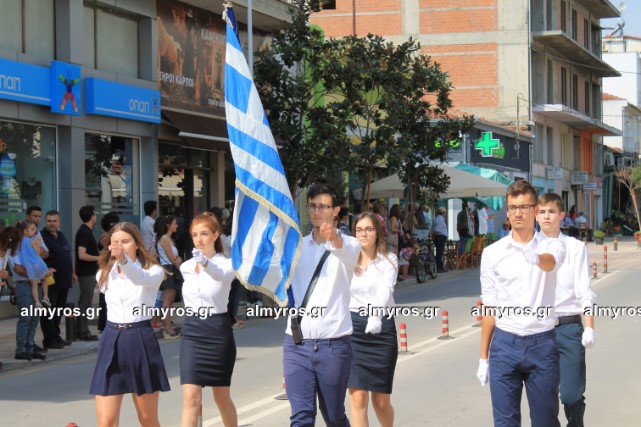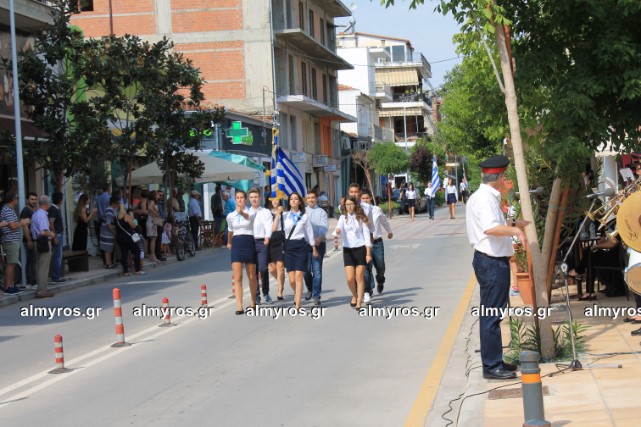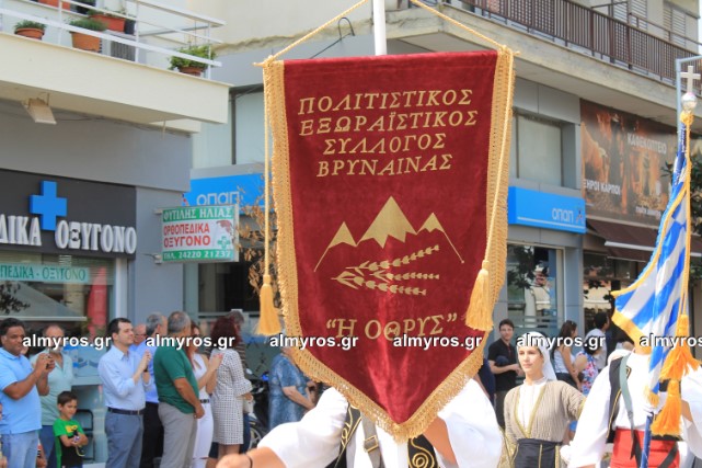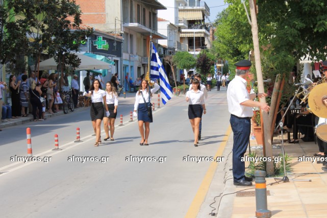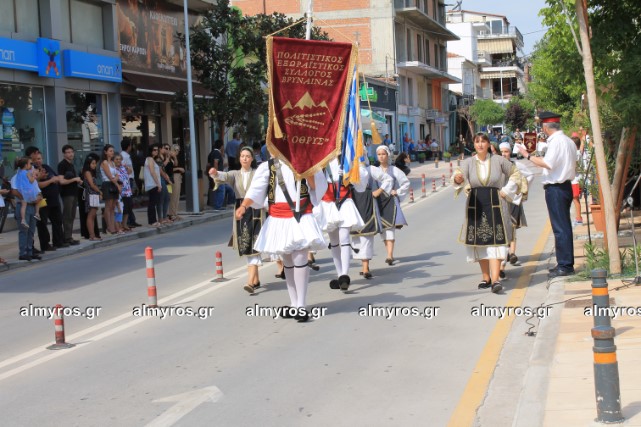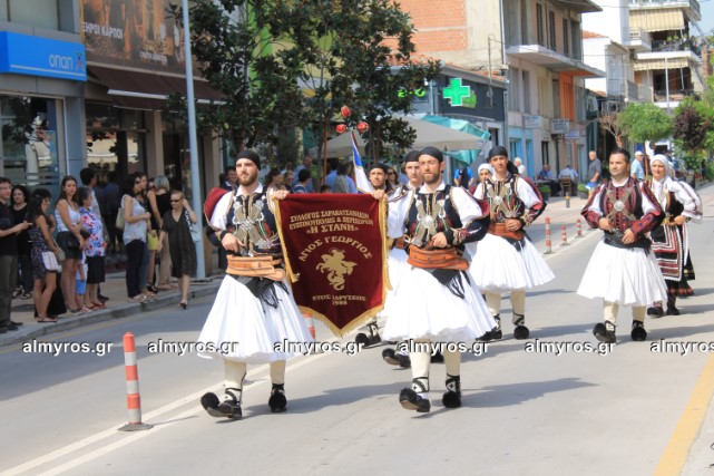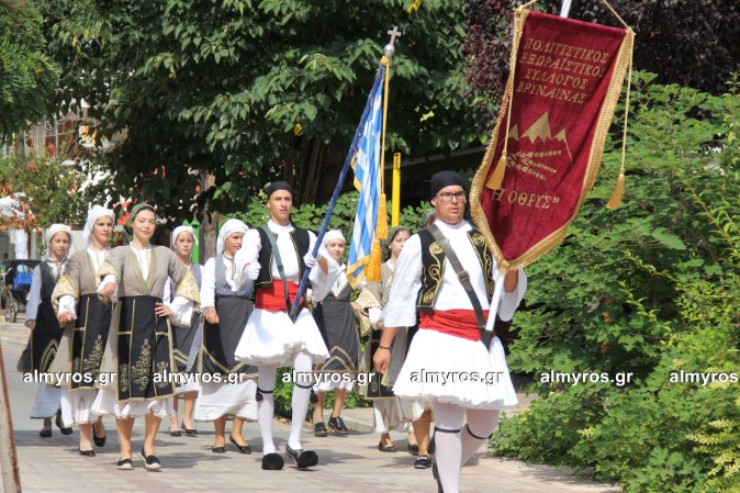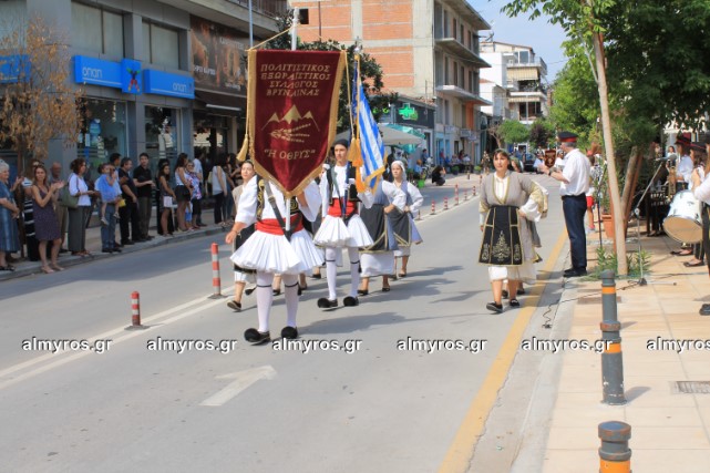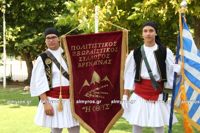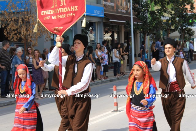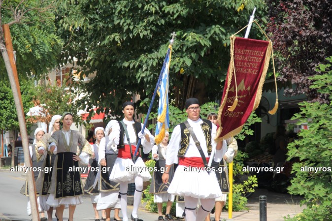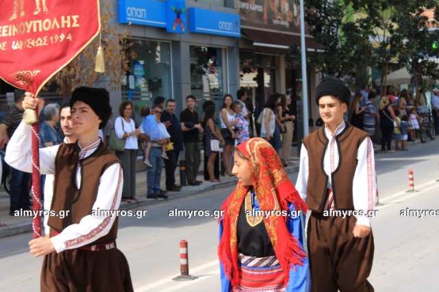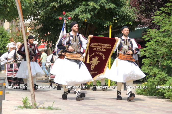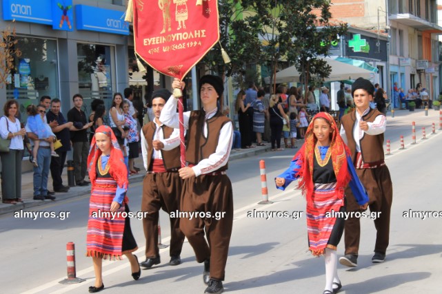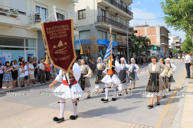 Τέλος πραγματοποιήθηκε παρέλαση μπροστά από τους επισήμους στην οδό Βασιλέως Κωνσταντίνου, μαθητικών τμημάτων και των Συλλόγων: Σαρακατσαναίων Ευξεινουπόλεως “Η Στάνη”, Ανατολικής Ρωμυλίας Ευξεινούπολης, Βλάχων Αλμυρού, Εξωραϊστικού Βρύναινας.