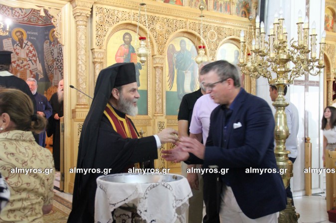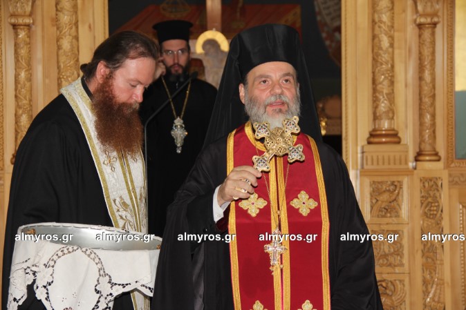 Σήμερα Παρασκευή 17 Αυγούστου 2018 τελέστηκε Λειτουργία προεξάρχοντος του Πανοσιολογιωτάτου Αρχιμανδρίτη Ιεροκήρυκα της Επαρχίας Αλμυρού π. Χρυσόστομου Παπαδόπουλου, στον Ιερό Μητροπολιτικό Ναό του Αγίου Δημητρίου. Ακολούθησε επίσημη δοξολογία στο Μητροπολιτικό Ναό του Αγίου Δημητρίου, με τη συμμετοχή όλων των Αρχών της πόλης, των Οργανώσεων και των Συμπολιτών.