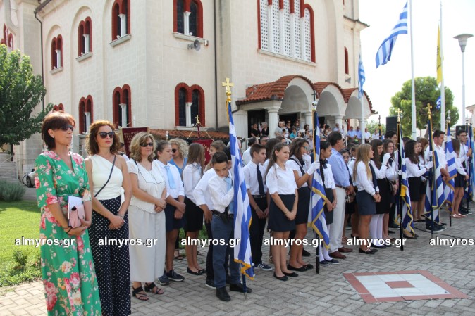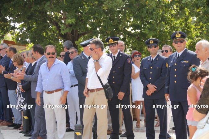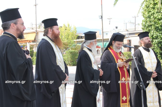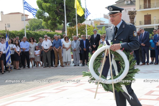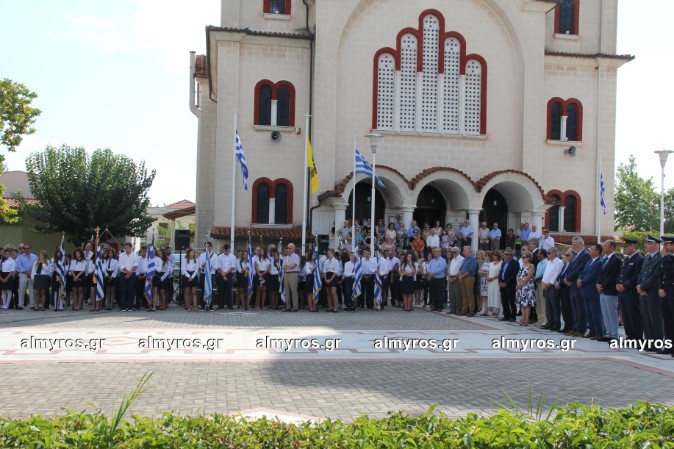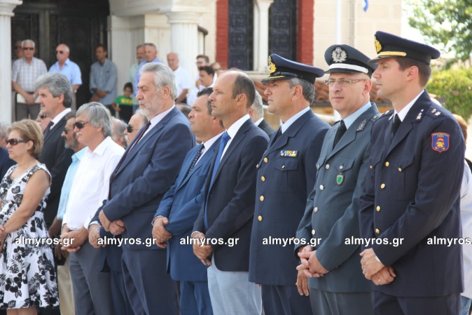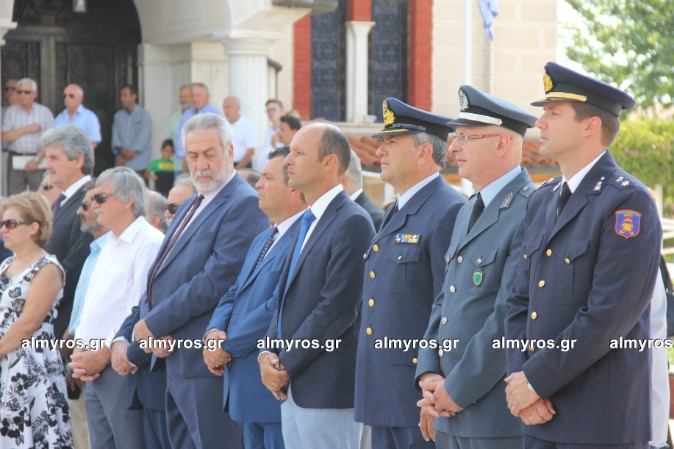 Λαός και κλήρος, ο Δήμαρχος, τα Μέλη του Δημοτικού Συμβουλίου, εκπρόσωποι Στρατιωτικών, Αστυνομικών και οι Πολιτικών Αρχών καθώς και οι Οργανισμοί Δημοσίου και Ιδιωτικού Δικαίου εκπρόσωποι Οργανώσεων και οι Συλλόγων, παρευρέθησαν στις εορταστικές εκδηλώσεις για την επέτειο της Απελευθέρωσης του Αλμυρού, σήμερα Παρασκευή 17 Αυγούστου.