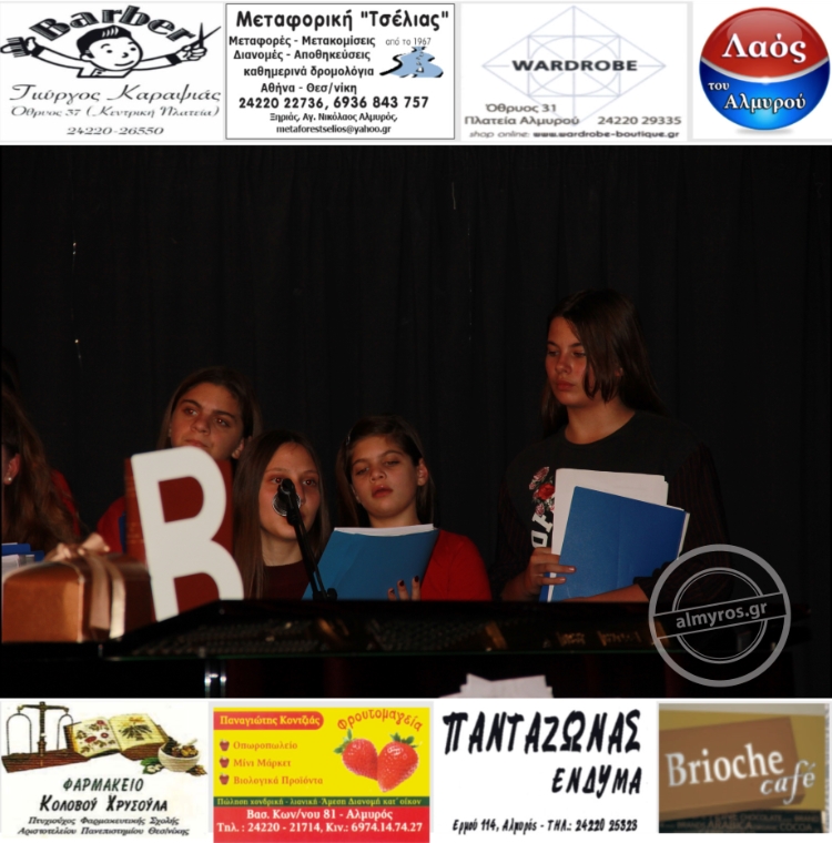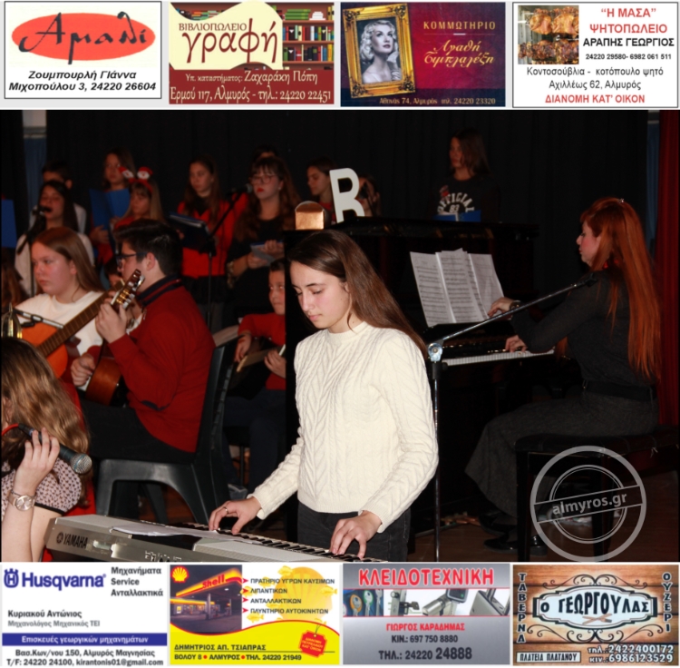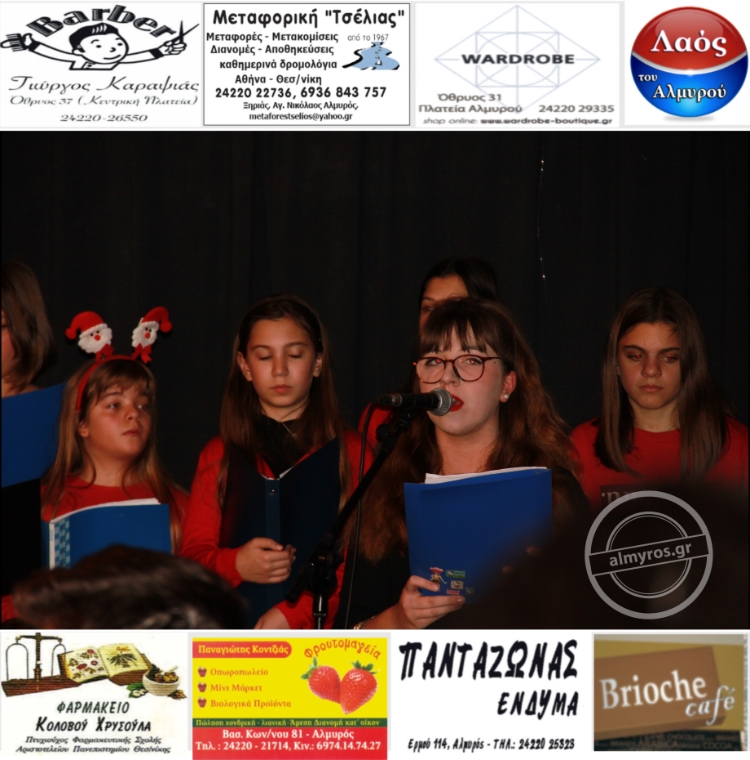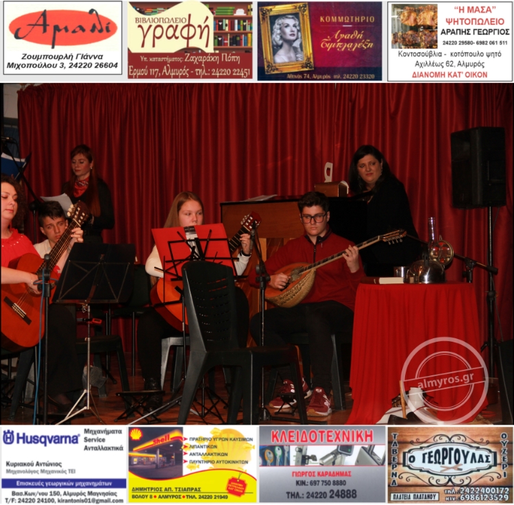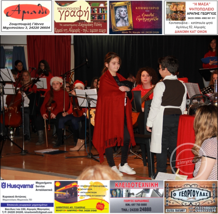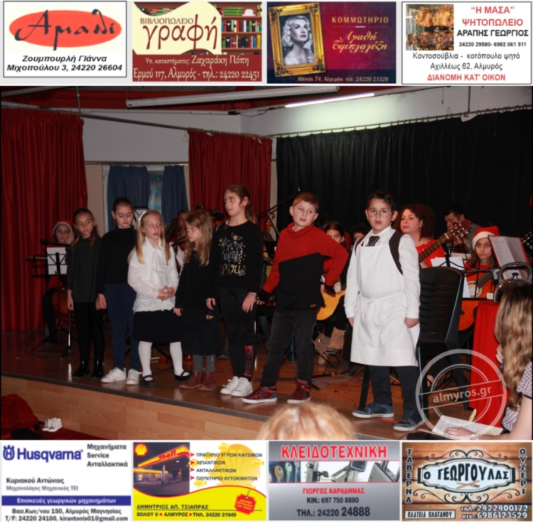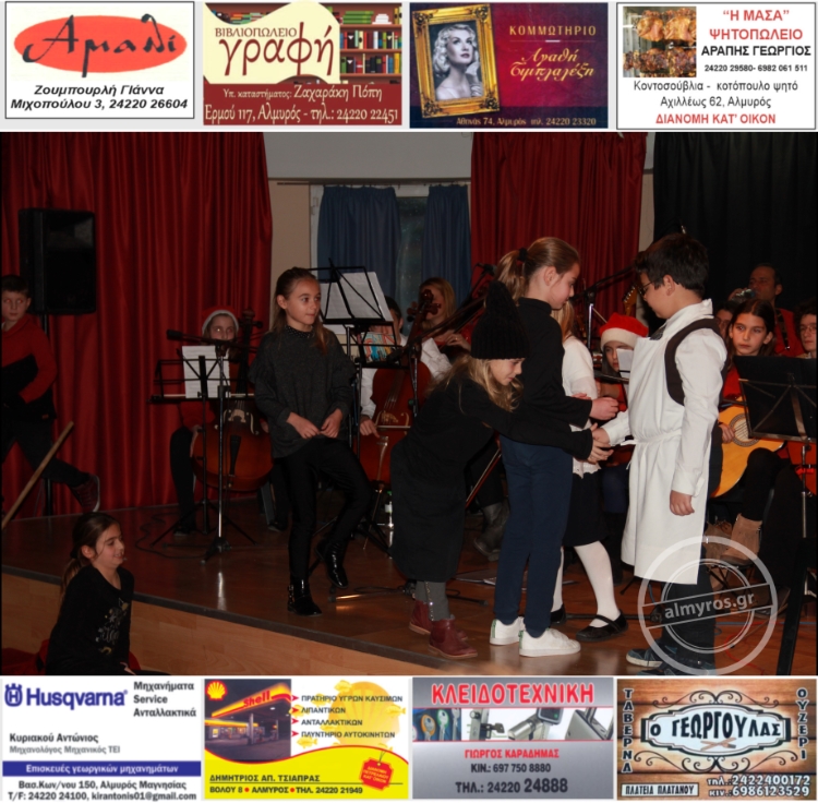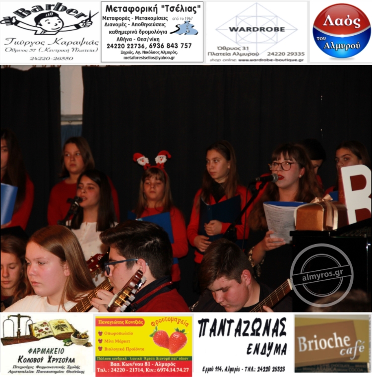 Το απόγευμα της Πέμπτης 20 Δεκεμβρίου, πραγματοποιήθηκε η Χριστουγεννιάτικη γιορτή του Δημοτικού Ωδείου Αλμυρού, στο Πολιτιστικό Κέντρο του Δήμου Αλμυρού.