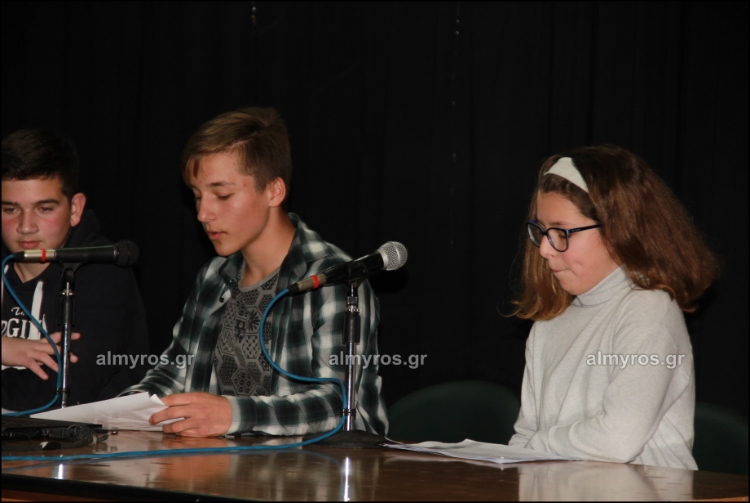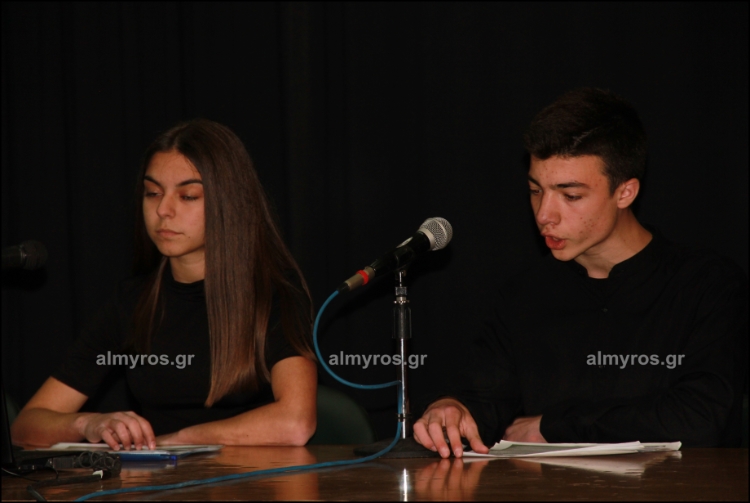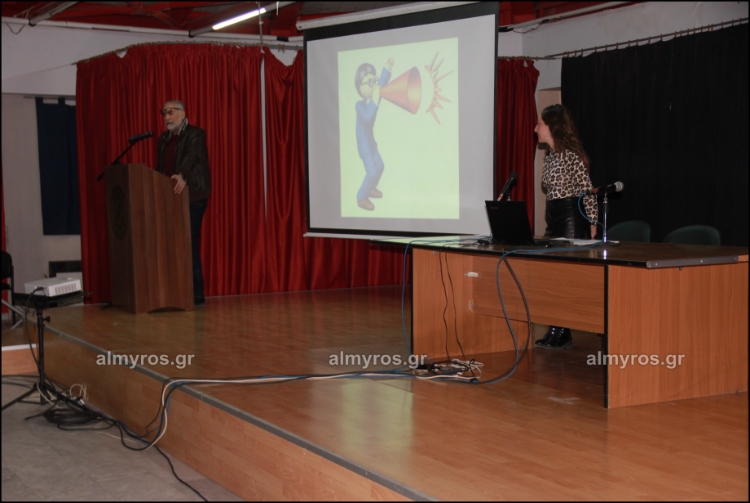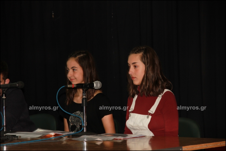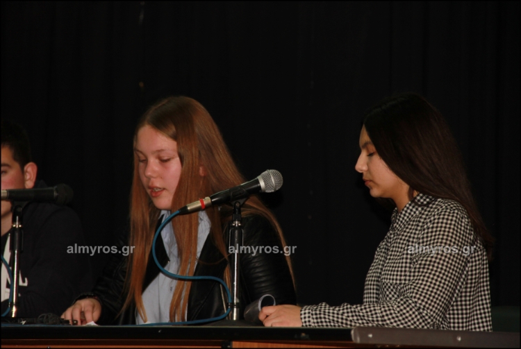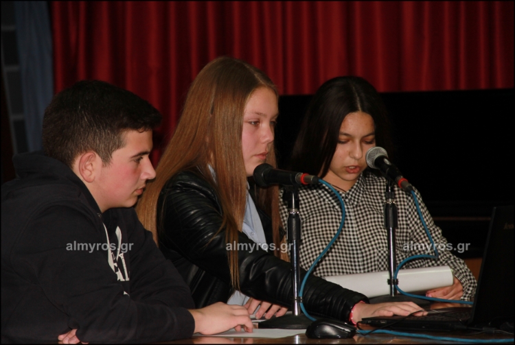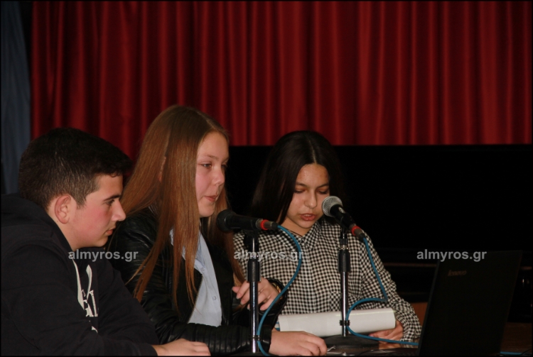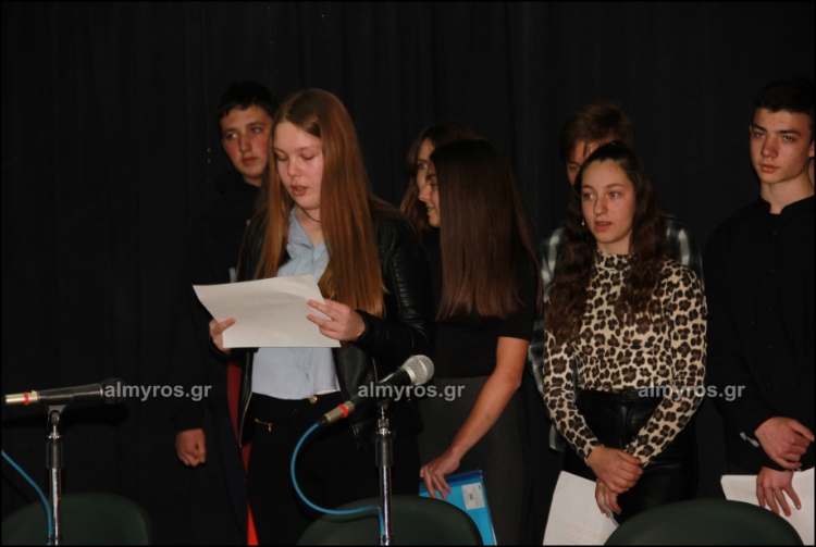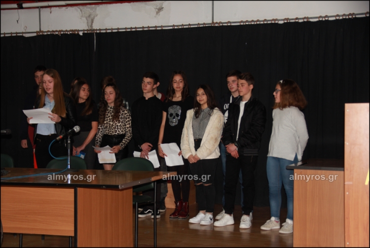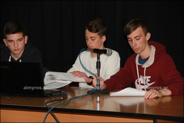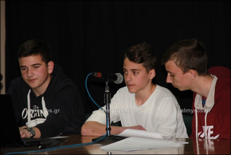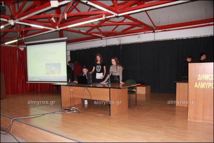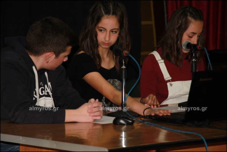 Το Σάββατο 16 Μαρτίου παρακολουθήσαμε την εκδήλωση που διοργάνωσε η σχολική κοινότητα του 1ου Γυμνασίου Αλμυρού. Οι μαθητές του 15μελούς, με τους καθηγητές τους, κυρίες Τζαφλέρη Χρυσούλα, Καλτσά Αποστολία, Φούντα Γεωργία και τον διευθυντή τους κ. Νίκο Χατζηαυγουστίδη, δούλεψαν πάνω στις θεματικές ενότητες “ανεργία”, “σχολικός εκφοβισμός”, “εθισμός στο διαδίκτυο”, “ναρκωτικά – παραβατικότητα των νέων”.