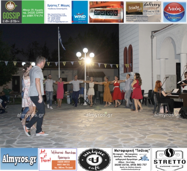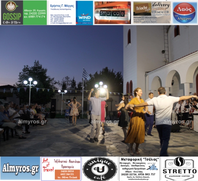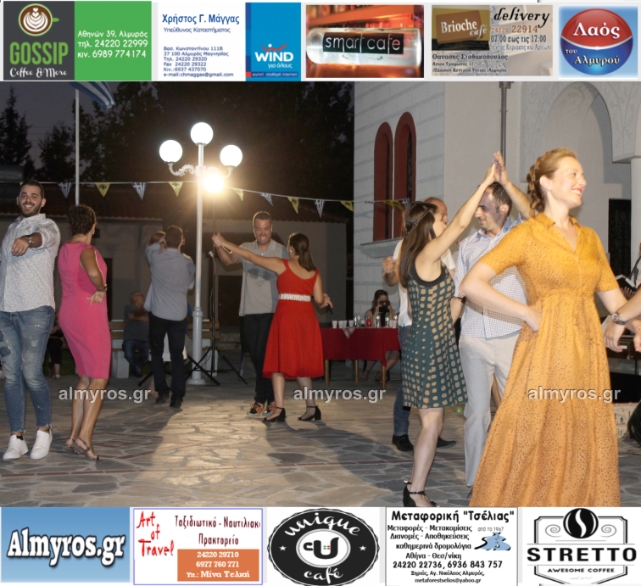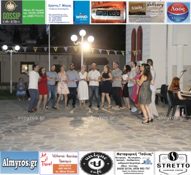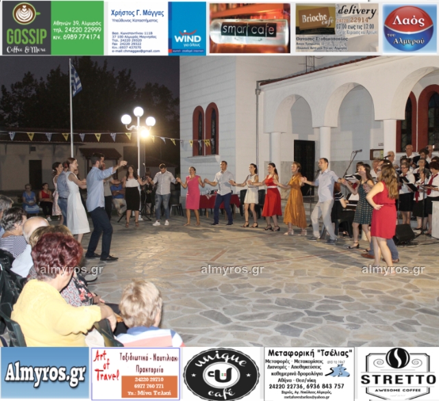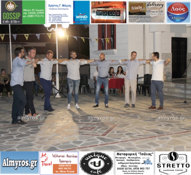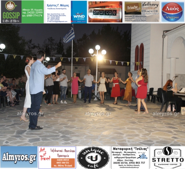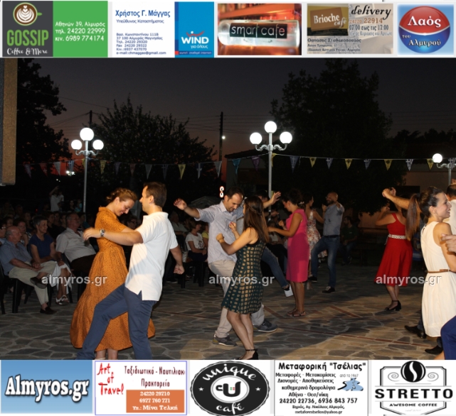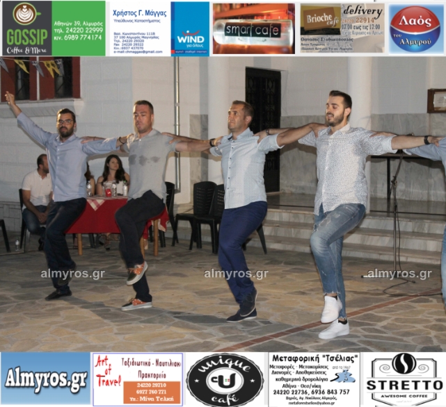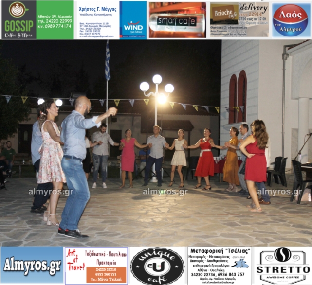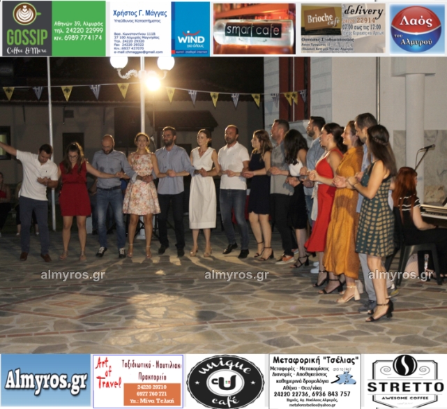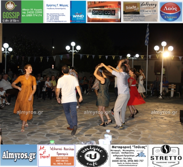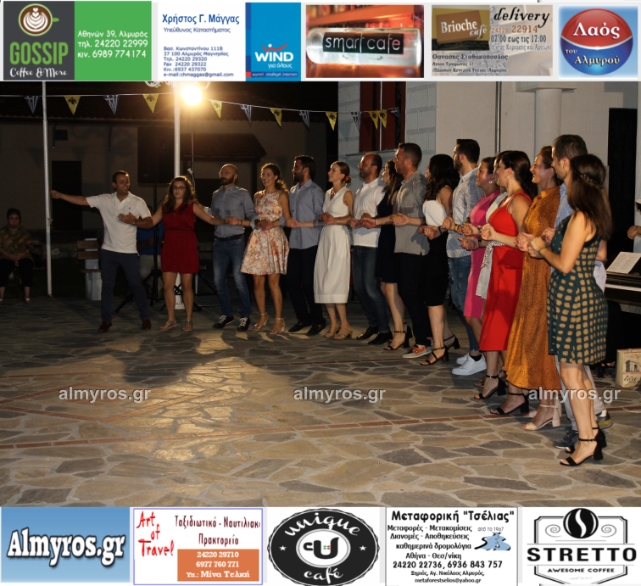 Την όμορφη καλοκαιρινή εκδήλωση πλαισίωσε χορευτικά το Περιφερειακό τμήμα χορού Αλμυρού, του Λυκείου Ελληνίδων Βόλου, με υπεύθυνο τον κ. Φώτη Σκαμαγκούλη, παρουσιάζοντας χορούς από τα νησιά του Αιγαίου.