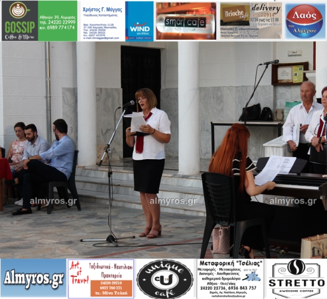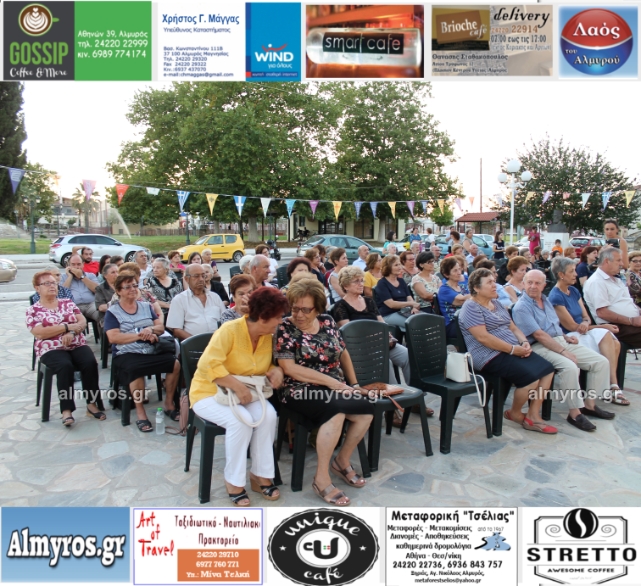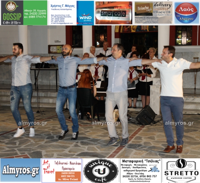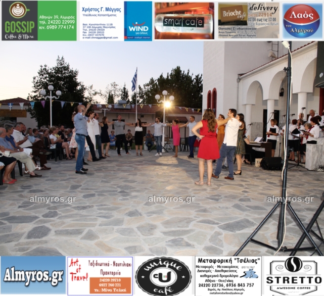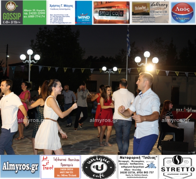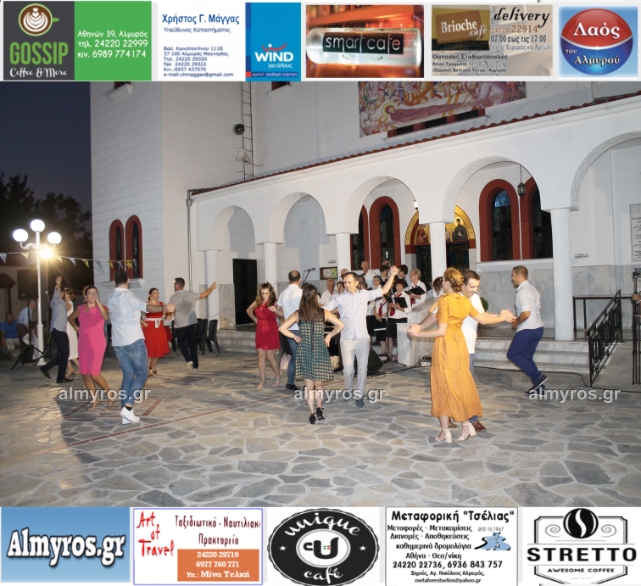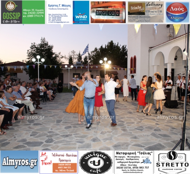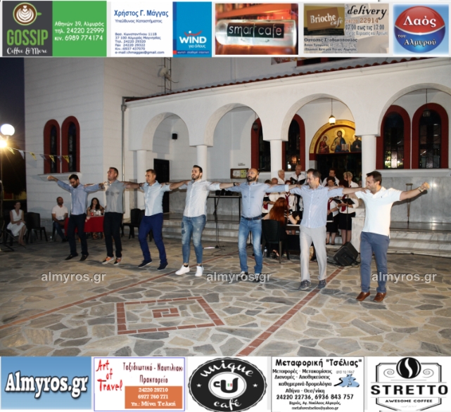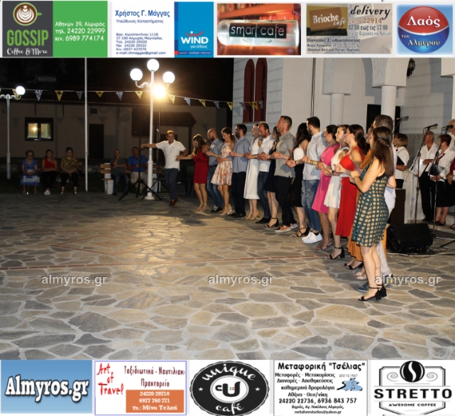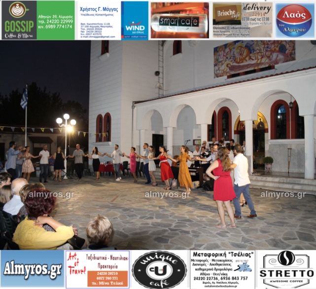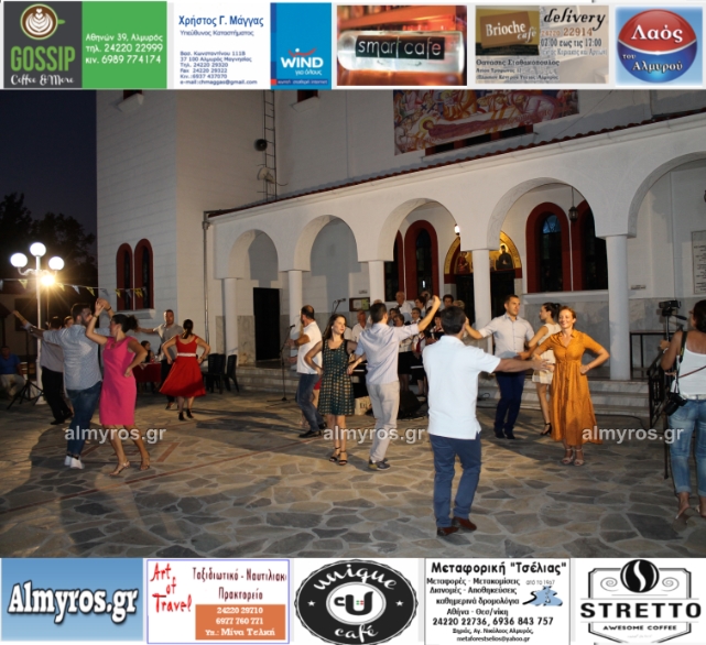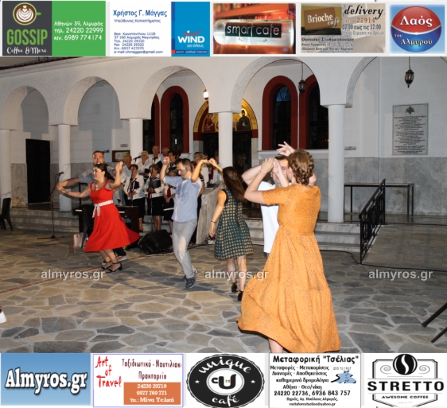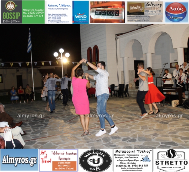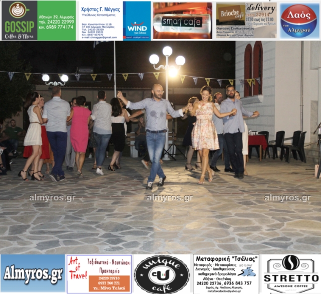 Την όμορφη καλοκαιρινή εκδήλωση πλαισίωσε χορευτικά το Περιφερειακό τμήμα χορού Αλμυρού, του Λυκείου Ελληνίδων Βόλου, με υπεύθυνο τον κ. Φώτη Σκαμαγκούλη, παρουσιάζοντας χορούς από τα νησιά του Αιγαίου.