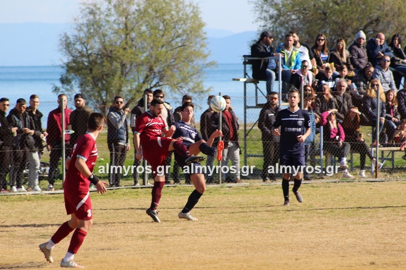 Στην επανάληψη, το σκηνικό δεν άλλαξε αν και θα περίμεναν οι φίλαθλοι τον Ρήγα να πιέσει. Ξεκίνησε με κλασική ευκαιρία για γκολ που έχασε ο Καραγιώργος, ο οποίος σε τετ-α-τετ είδε τον Καλαϊτζίδη με καταπληκτική επέμβαση να του στερεί το γκολ (46′). Στο 53′ ο Θάνος “τσίμπησε” την μπάλα και έβγαλε σε κόρνερ ξανά ο τερματοφύλακας σε νέα μεγάλη φάση και φθάσαμε στο 63ο λεπτό όταν έγινε το 2-0. Ο Θάνος εκτέλεσε κόρνερ και ο Λάζογλου με κεφαλιά στο πρώτο δοκάρι” κάρφωσε” την μπάλα στα δίχτυα. Στο επόμενο λεπτό ακολούθησε μια καλή στιγμή των Βελεστινλιωτών με σουτ άουτ του Γάρου, στο 78′ ο Μουράβας μπλόκαρε με διπλή προσπάθεια φάουλ του Γουτούλη, ενώ ο τελευταίος είχε σουτ λίγο άουτ στο 80′. Ο Νούσιας μια καλή φάση και κλασική ευκαιρία στο 84ο λεπτό όταν απέναντι από τον Καλαϊτζίδη, αντί να πλασάρει για γκολ, θέλησε να τον περάσει, με αποτέλεσμα αυτός να τον ανακόψει. Στο τελευταίο λεπτό, σουτ του Σουγκάρη έβγαλε ο Μουράβας και η μπάλα χτύπησε στο δεξί κάθετο.