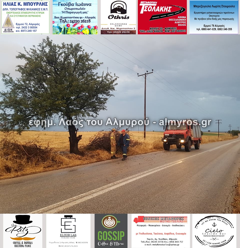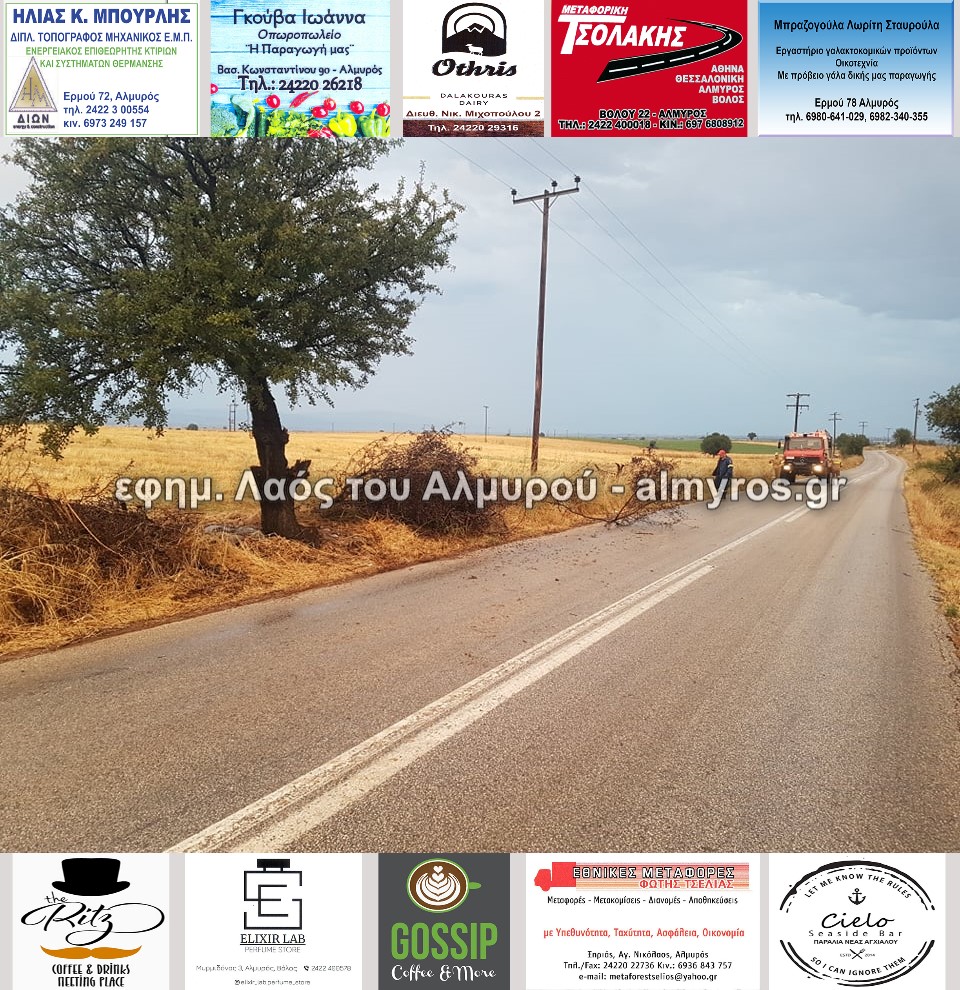 Πιο συγκεκριμμένα στο Πυροσβεστικό Κλιμάκιο Αλμυρού δέχθηκαν κλήσεις για δυο στύλους της ΔΕΗ έξω από το Κρόκιο οι οποίοι έγειραν πάνω από την επαρχιακή οδό Αλμυρού Βόλου, ενώ καλώδιά τους κόπηκαν και έπεσαν στο οδόστρωμα.