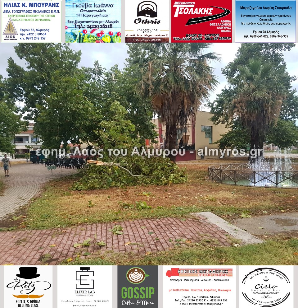 Στην πλατεία Κροκίου, στην πλατεία Ευξεινούπολης, έξω από το νεκροταφείο του Αλμυρού, σε super market της περιοχής και στην παραλία “Αη Γιάννη Ευξεινούπολης ” δέντρα ξεριζώθηκαν και μεγάλα κλαδιά κόπηκαν, ενώ και σ’ αυτά έσπευσαν οι πυροσβέστες του Π.Κ. Δρυμώνος και τα απομάκρυναν. Στις εργασίες συνδράμουν και οι υπάλληλοι του Δήμου Αλμυρού με οχήματά του.