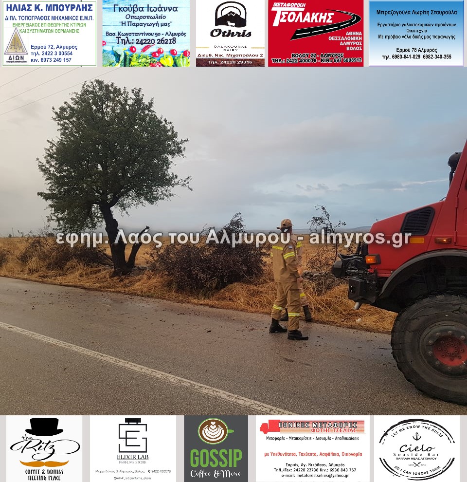 Αστυνομικοί του Α.Τ. Αλμυρού διέκοψαν την κυκλοφορία, ώστε να αποφευχθούν ατυχήματα. Αυτή τη στιγμή ακόμη επιχειρούν συνεργεία στην επαρχιακή οδό για την αποκατάσταση της βλάβης στους στύλους της ΔΕΗ.