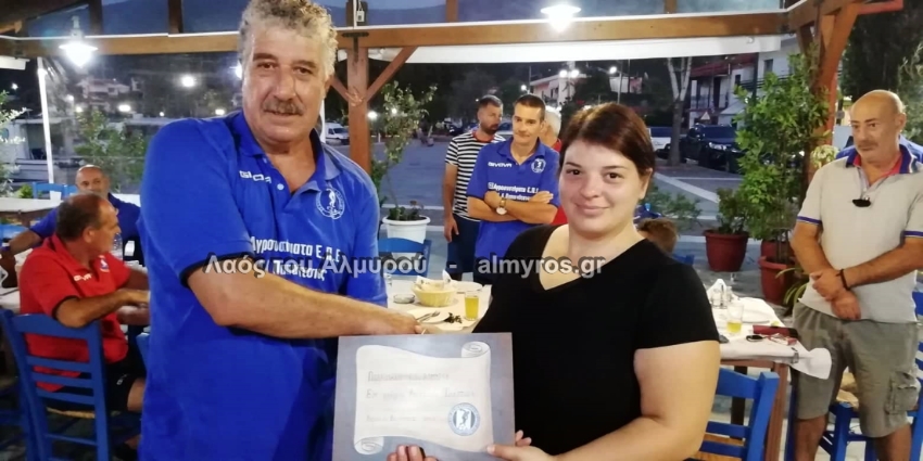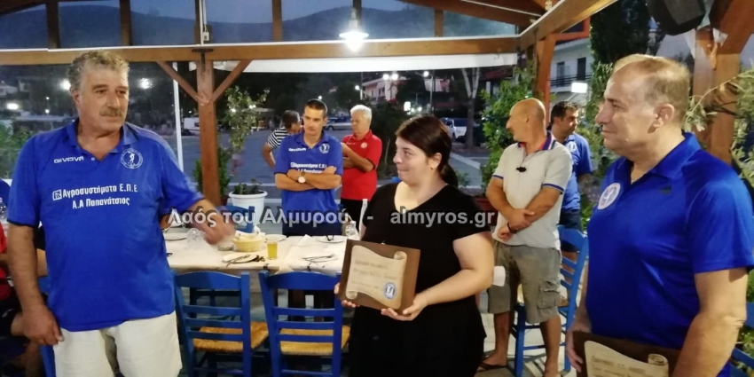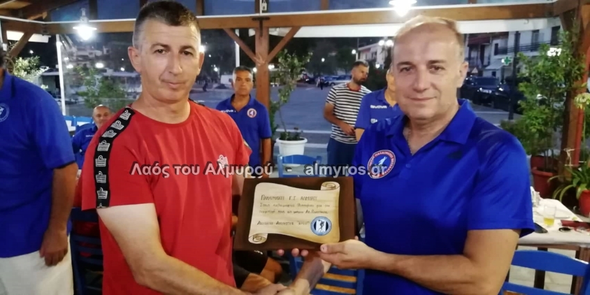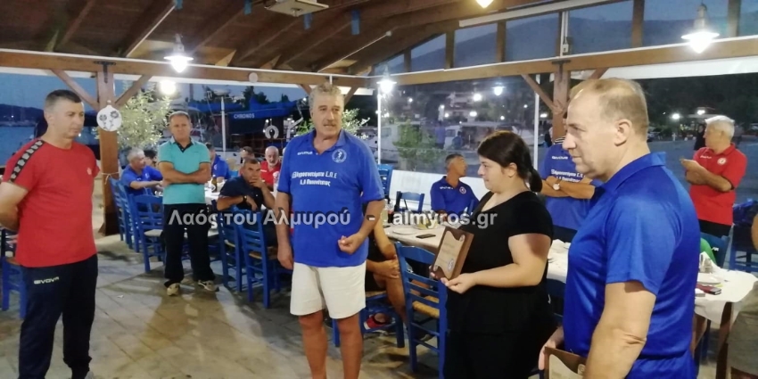 Μετά τους αγώνες, ακολούθησε δείπνο στην ταβέρνα “Αχίλλειο” της οικογένειας Πλασταρά. Εκεί, ο Απόστολος Καραδήμος μίλησε για τον ξάδερφό του που έφυγε από τη ζωή πριν πέντε χρόνια και παρέδωσε αναμνηστική πλακέτα στην οικογένειά του και στους φιλοξενούμενους Επίλεκτους παλαίμαχους.