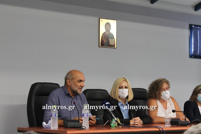 Στην ανοικτή σύσκεψη που πραγματοποιήθηκε, ο Δήμαρχος Αλμυρού ενημέρωσε την κα Γεννηματά για τις καταστροφές, το γεγονός ότι ο Αλμυρός δεν έχει πόσιμο νερό, την εξαφάνιση μεγάλου τμήματος του περιφερειακού της πόλης, το διαλυμένο αγωγό αποχέτευσης, τις υποδομές που πλέον δεν υπάρχουν. Μίλησε για τη φύση της περιοχής που έχει πολλούς αγρότες και κτηνοτρόφους και όπως χαρακτηριστικά είπε “κάνουμε μεγάλο αγώνα ώστε σε σύντομο διάστημα να αποκαταστήσουμε την κανονικότητα στην πόλη, αν και δεν θα είναι στην πρότερα κατάσταση. Από εσάς ζητάμε από το πόστο σας τη βοήθεια που μπορείτε να μας προσφέρετε για γρήγορη αποκατάσταση των υποδομών”.