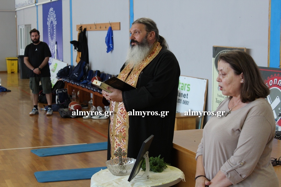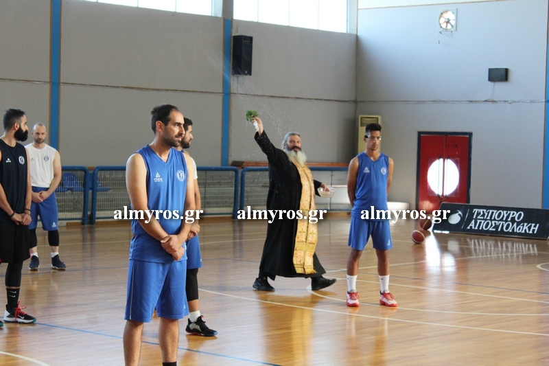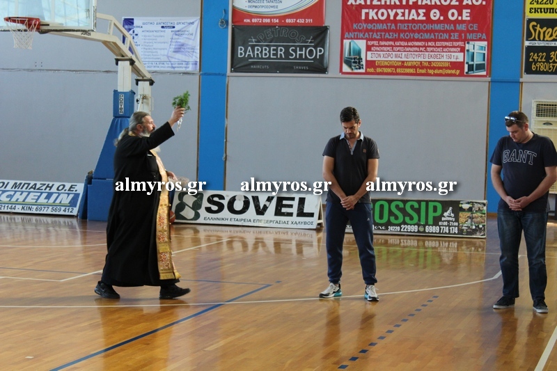 Μετά τη λήξη της προπόνησης του Παιδικού τμήματος και πριν την έναρξη αυτής του Ανδρικού, τελέστηκε σήμερα το απόγευμα (Παρασκευή 16/10) ο Αγιασμός του μπάσκετ του ΓΣ Αλμυρού αναφορικά με τις δύο αυτές ομάδες.