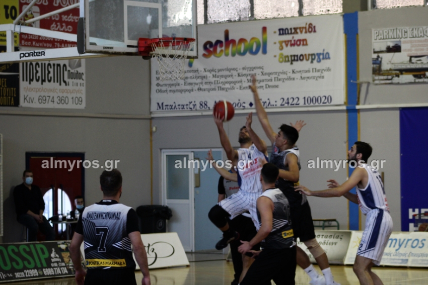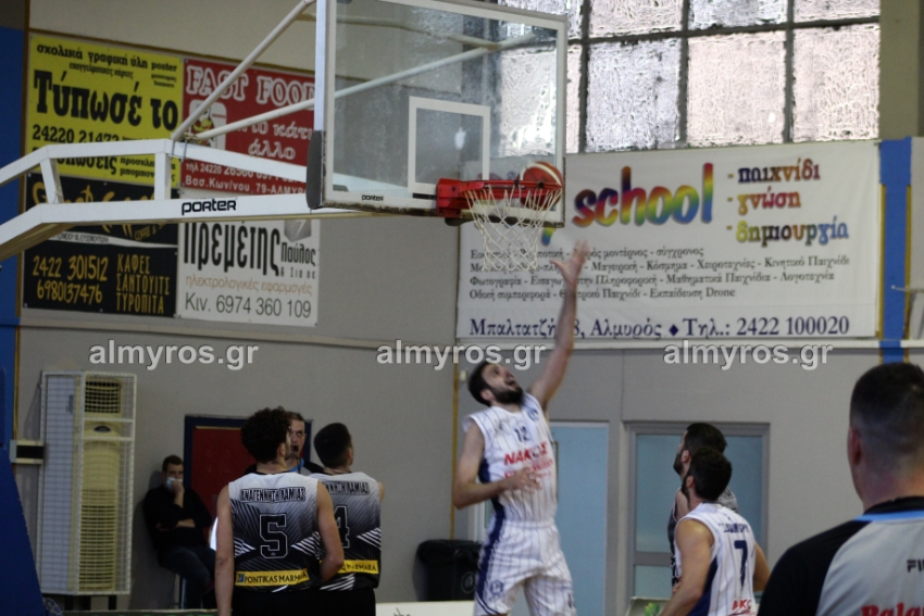 ΓΣ Αλμυρού (Νάνης): Κοντοστάθης 8 (2/2β., 3/3δ., 0/6τρ., ριμπ.10-1), Μαμούρας 2 (0/1β., 1/1δ.), Παπούλιας 17 (11/12β., 3/7δ., 0/2τρ., ριμπ.2-2), Πολίτης 13 (2/2β., 4/10δ., 1/11τρ., ριμπ.4-1), Χασιώτης 12 (3/3δ., 2/2τρ.), Γώγουλας (0-1τρ.), Γιωτόπουλος 5 (1/4δ., 1/5τρ., ριμπ.2-0), Τσαβές 2 (0/4β., 1/4δ., ριμπ.10-3), Χαρχαρής 4 (2/2δ., ριμπ.1-4), Βαλαμούτης 5 (1/2δ., 1.5τρ., ριμπ.1-0).