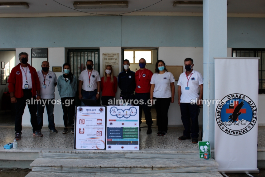 Επίδειξη καρδιοπνευμονικής αναζωογόνησης (κάρπα) και χρήσης του απινιδωτή έγινε το απόγευμα της Παρασκευής 30 Οκτωβρίου στο στάδιο Αλμυρού από μέλη της Ελληνικής Ομάδας Διάσωσης-Παραρτήματος Μαγνησίας. Ήταν μια πρωτοβουλία του τμήματος στίβου του ΓΣ Αλμυρού. Το «παρών» μεταξύ των άλλων, έδωσαν η έφορος και οι τρεις προπονήτριες του τμήματος, ο κ. Μπράβος από την αναρρίχηση του ΕΟΣ Αλμυρού, ο πρόεδρος του ΓΣΑ Δήμος Περπερίδης κι άτομα που ενδιαφέρθηκαν να λάβουν βασικές γνώσεις πρώτων βοηθειών.Από τον Βόλο ήρθαν στο στάδιο Αλμυρού τα μέλη της Ομάδας Διάσωσης, Βαγγέλης Βαμβακάς, Βαγγέλης Καψιώτης, Γιάννης Θειακούλης, Ιωάννης Στούμπος, Όλγα Ραφαηλίδου και Κώστας Μυργιώτης. Ο κ. Βαμβακάς έκανε την αρχική παρουσίαση με αναφορά σε όλα τα στάδια της ΚΑΡΠΑ, ποιες είναι οι πρώτες βοήθειες που μπορούμε να δώσουμε σε κάποιον άνθρωπο που δεν αναπνέει. Όπως είπε χαρακτηριστικά, με την καρδιοπνευμονική αναζωογόνηση, οι πιθανότητες είναι γύρω στο 10% για να επαναφέρουμε έναν άνθρωπο, με το μηχάνημα του απινιδωτή ανεβαίνουν από 50 έως 80%. Το μηχάνημα που είναι τοποθετημένο στο στάδιο Αλμυρού σώζει ζωές. Ο κ. Θειακούλης έδειξε σε ένα ανθρώπινο ομοίωμα τις πρώτες βοήθειες με πολύ ενδιαφέρουσες πληροφορίες, οι Χάιδω Καραπτσιά και Νικολέτα Βελάνη δοκίμασαν επίσης την λεγόμενη κάρπα, ενώ η έφορος στίβου Τζίνα Μπεχλιβανίδη, αφού ευχαρίστησε τα μέλη της Ομάδας Διάσωσης Μαγνησίας για την ενημέρωση, σχολίασε πως ήταν μια πολύ σημαντική πρωτοβουλία του στίβου του ΓΣΑ ώστε να γίνει γνωστός ο τρόπος χρήσης του απινιδωτή.