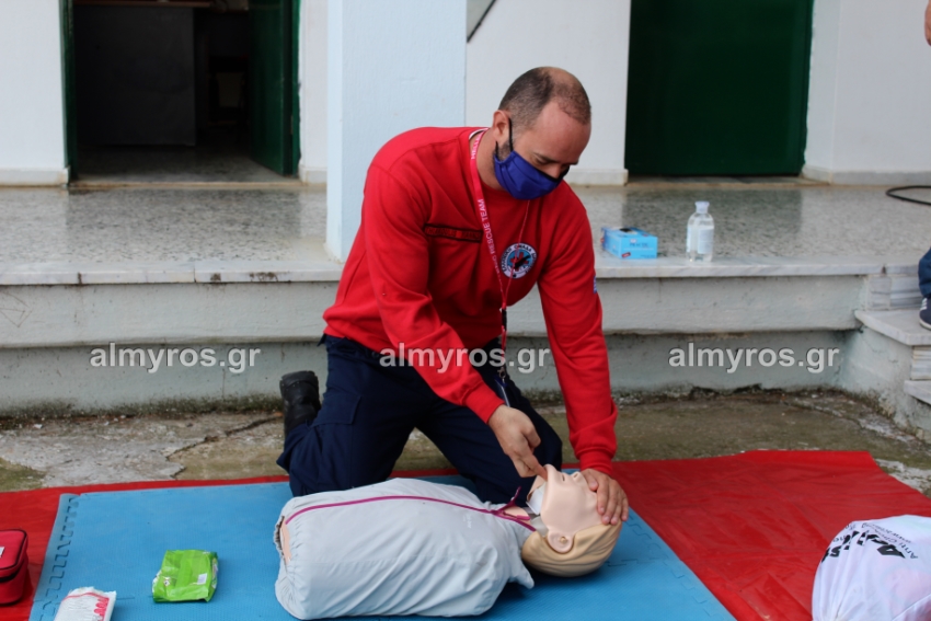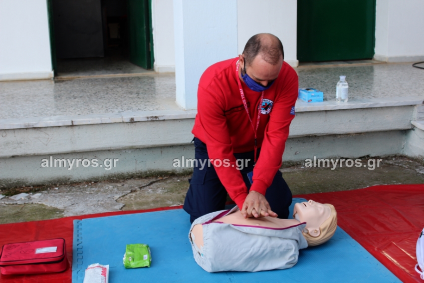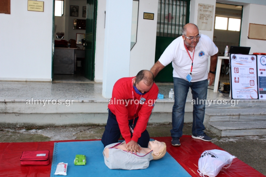 Επίδειξη ΚΑΡΠΑ και χρήσης απινιδωτή στο στάδιο Αλμυρού / φωτογραφίες