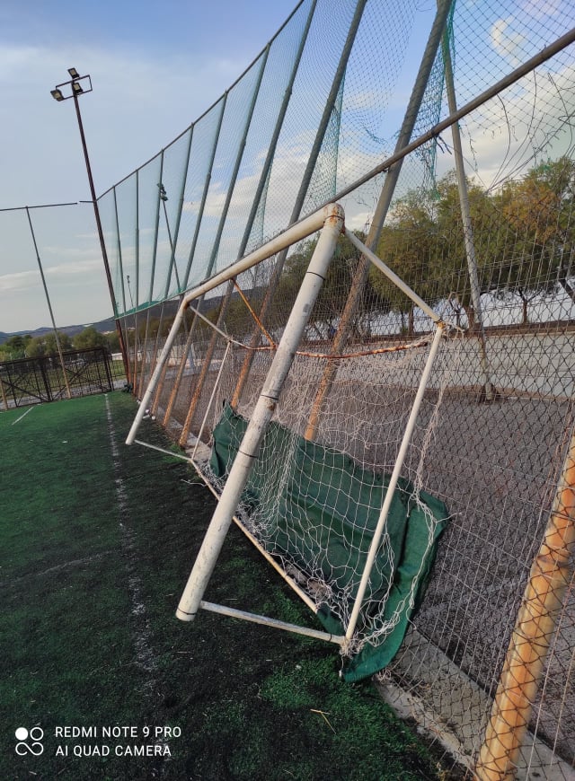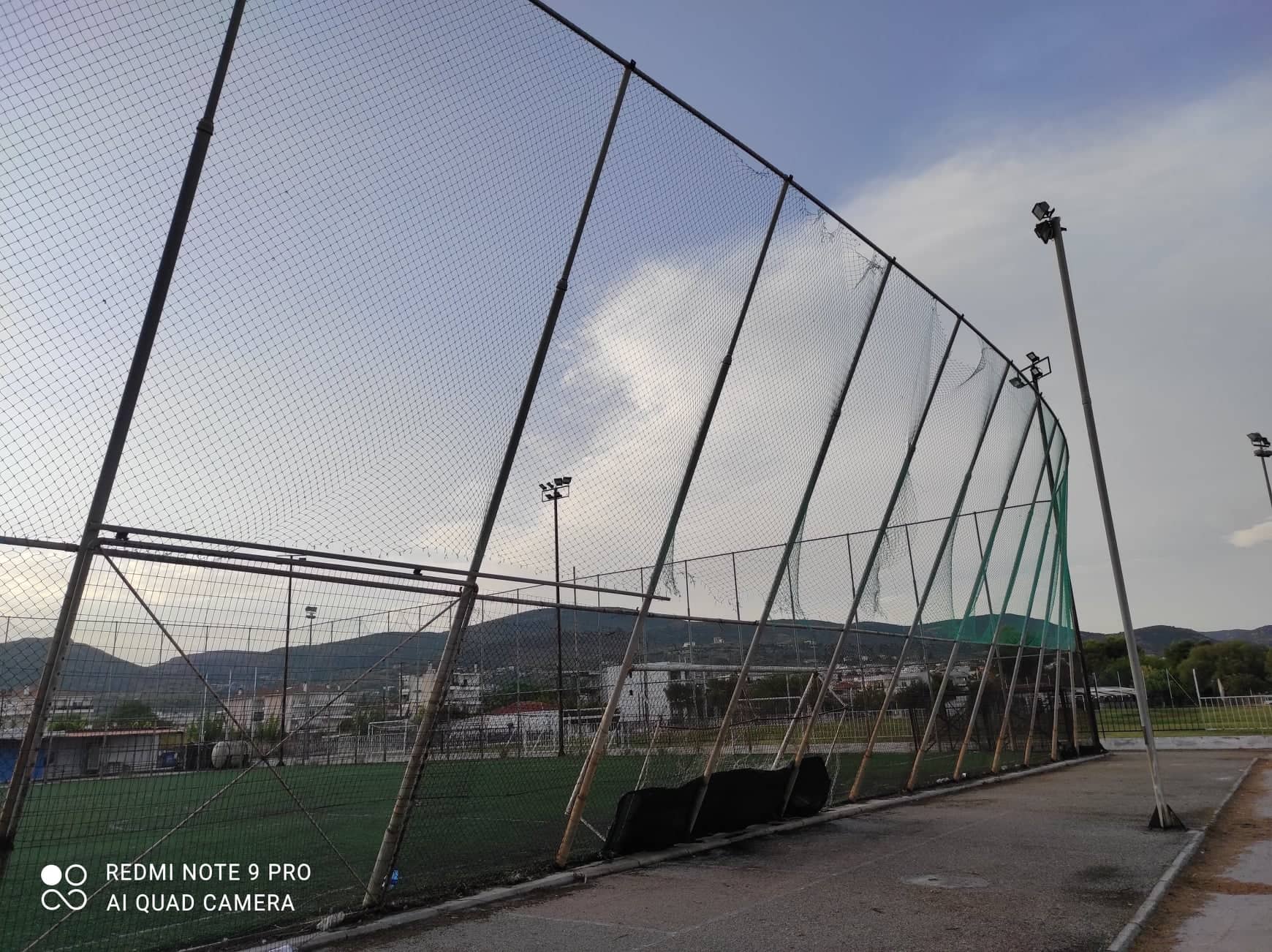 Μεγάλη ήταν η ζημιά που υπέστη και η περίφραξη του γηπέδου 5×5 όπως θα δείτε στις παρακάτω εικόνες που έδωσε στη δημοσιότητα ο Πύρασος.