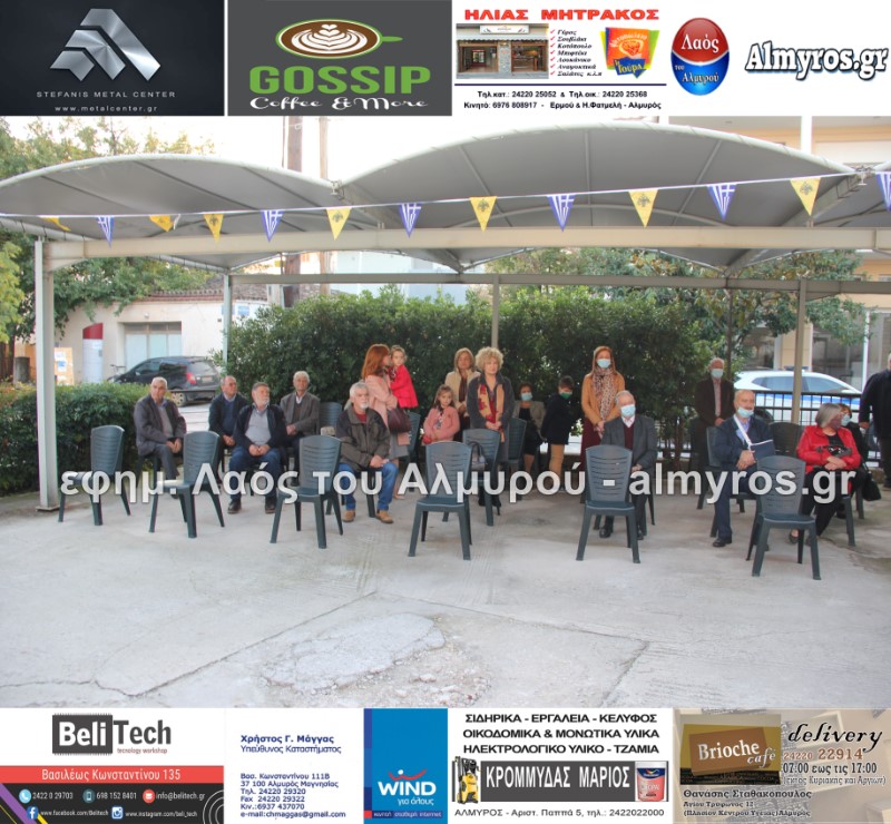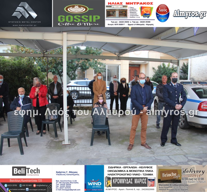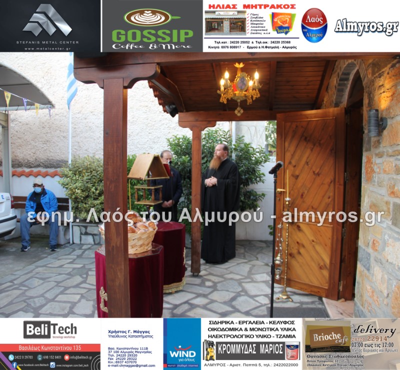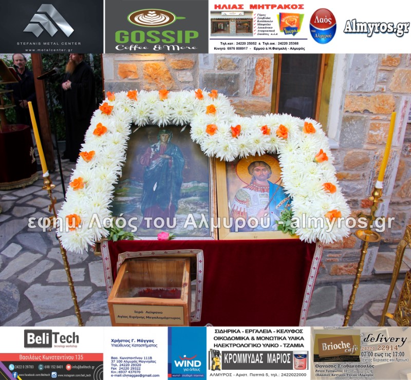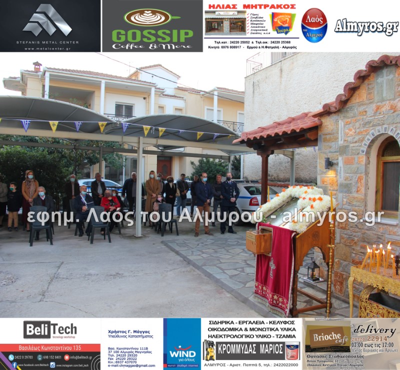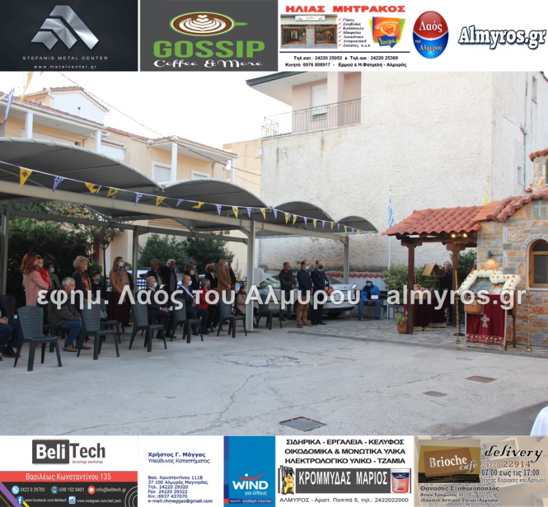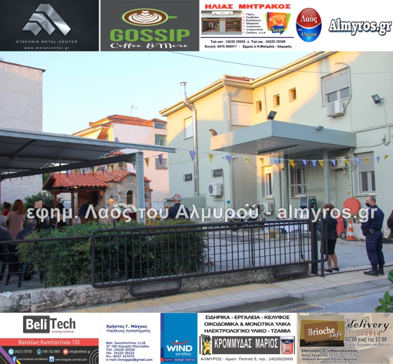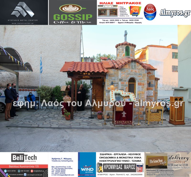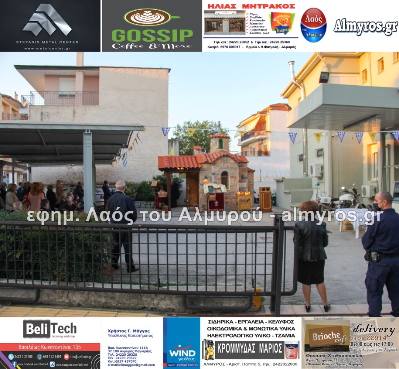 Το απόγευμα της Τρίτης 19 Οκτωβρίου τελέστηκε Πανηγυρικός Εσπερινός στο Ιερό Παρεκκλήσιο της Αγίας Ειρήνης της Μεγαλομάρτυρος και του Αγίου Ενδόξου Μάρτυρος Αρτεμίου στο προαύλιο του αστυνομικού τμήματος Αλμυρού. Το “παρών” μεταξύ των άλλων έδωσαν ο Υποδιοικητής του Α.Τ. Αλμυρού Υπαστυνόμος Α’ κ. Κώστας Αρίδης, ο Διοικητής της Εξωτερικής φρουράς Φυλακών Κασσαβέτειας Αστυνόμος Α’ κ. Παναγιώτης Τσιρογιάννης, ο Δήμαρχος Αλμυρού κ. Βαγγέλης Χατζηκυριάκος, ο Αντιδήμαρχος Αλμυρού κ. Λεωνίδας Βούλγαρης και φυσικά όλη η δύναμη του τμήματος Αλμυρού.