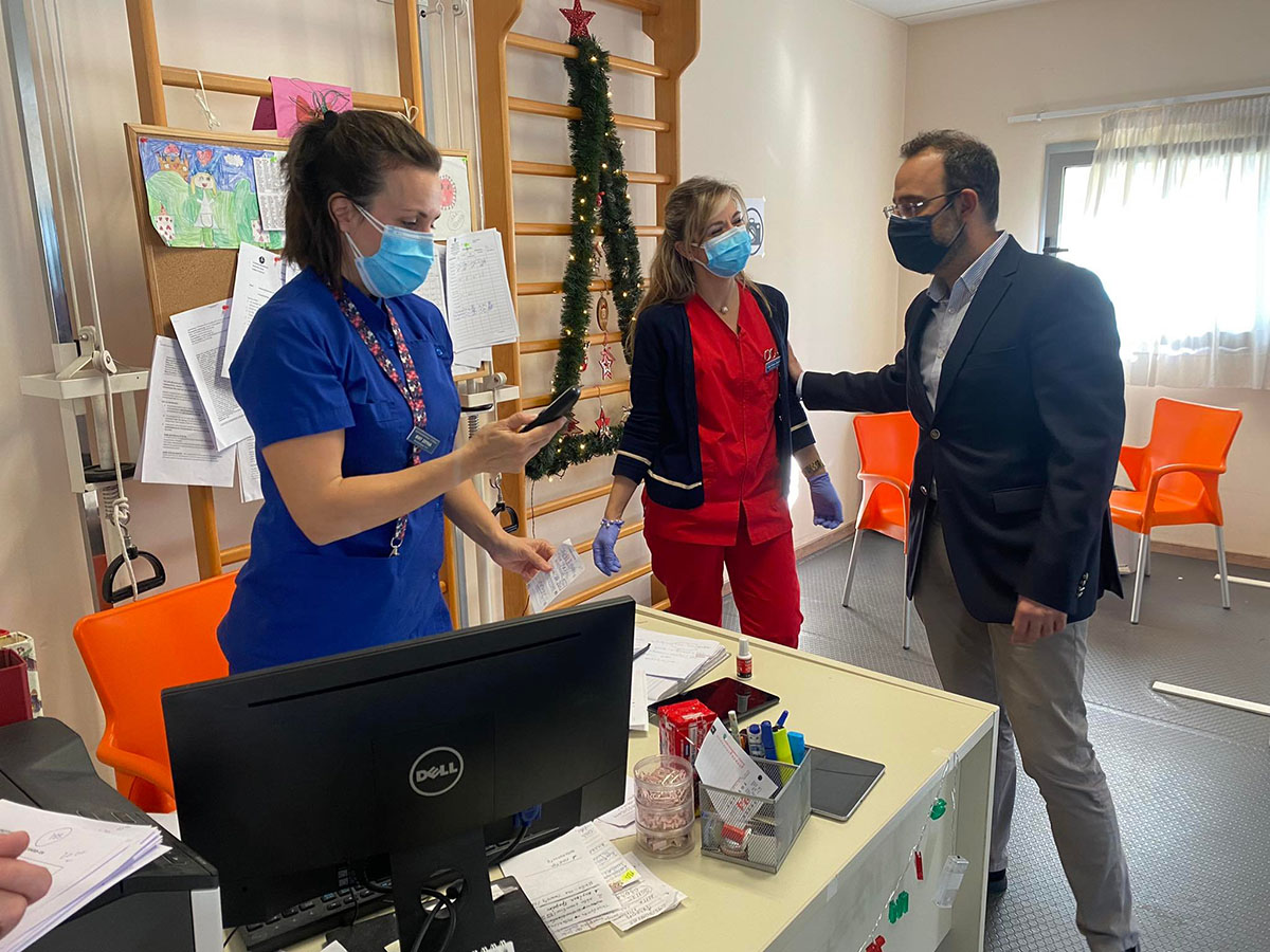 Επίσης, συνομίλησε για την πορεία των εμβολιασμών με τις νοσηλεύτριες των εμβολιαστικών κέντρων για τους ενήλικες και τα παιδιά. Όπως τονίστηκε, η έναρξη της εμβολιαστικής διαδικασίας στα παιδιά έγινε με τις καλύτερες προϋποθέσεις και συνεχίζεται χωρίς προβλήματα. Μάλιστα, ο βουλευτής περιηγήθηκε στους χώρους του παιδιατρικού εμβολιαστικού κέντρου που έχουν διαμορφωθεί κατάλληλα για τον σκοπό αυτό και ενημερώθηκε ότι στα παιδιά που εμβολιάζονται, προσφέρονται δώρα από τη διοίκηση του «Αχιλλοπούλειου».