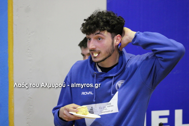 Την πίτα έκοψε ο Σούλης Γώγουλας και τυχεροί που βρήκαν τα φλουριά ήταν ο Ηλίας Βαλαμούτης και ο Βαγγέλης Κοντοστάθης. Ένας έλαβε μια δωροεπιταγή για αγορές σε κατάστημα του Αλμυρού κι ο άλλος χρηματικό ποσό που διέθεσε ο Σούλης Γώγουλας. Αν μη τι άλλο, μια σπάνια κίνηση, αξιέπαινη και αξιοσημείωτη από τον αρχηγό του συλλόγου, τον “πατέρα” της κυανόλευκης μπασκετικής φαμίλιας…