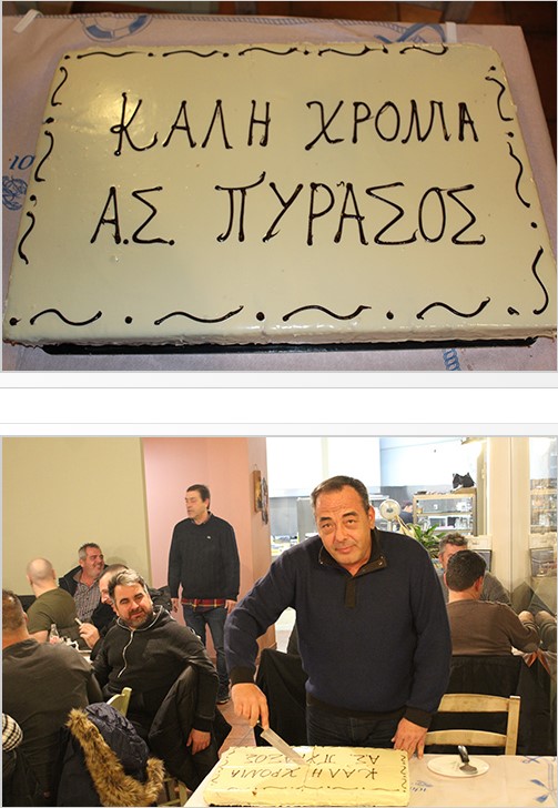 Ο πρόεδρος Γιάννης Μόσδρομος, κόβοντας τη βασιλόπιτα, ευχήθηκε σε όλους καλή χρονιά με υγεία και κάθε ευτυχία σε προσωπικό, επαγγελματικό επίπεδο και για την ομάδα ευχήθηκε να συνδυαστεί το έτος αυτό που συμπίπτει με τα 70άχρονα από την ίδρυση του Πυράσου με την επιτυχία της επιστροφής στις εθνικές κατηγορίες.